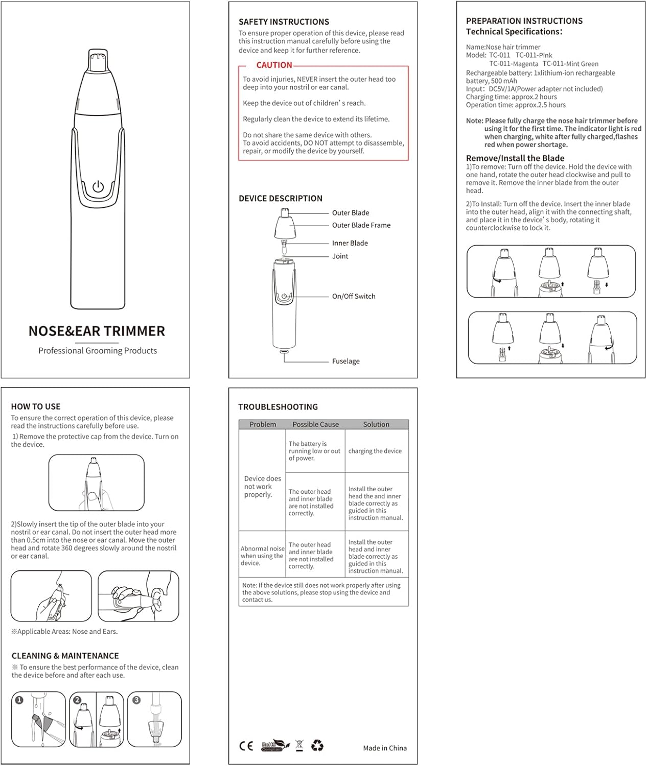 Recommended Uses Beard, Nose, Ear, Face, Eyebrows
