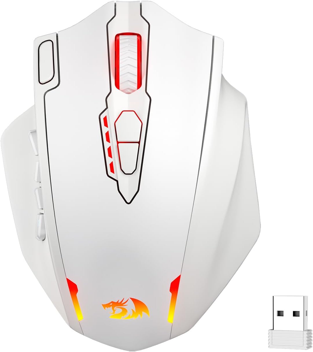 Redragon M913 Impact Elite Wireless Gaming Mouse, 16,000 DPI Wired/Wireless RGB Mouse with 16 Programmable Buttons, 45 Hr Battery and Pro Optical Sensor, 12 Side Buttons MMO Mouse