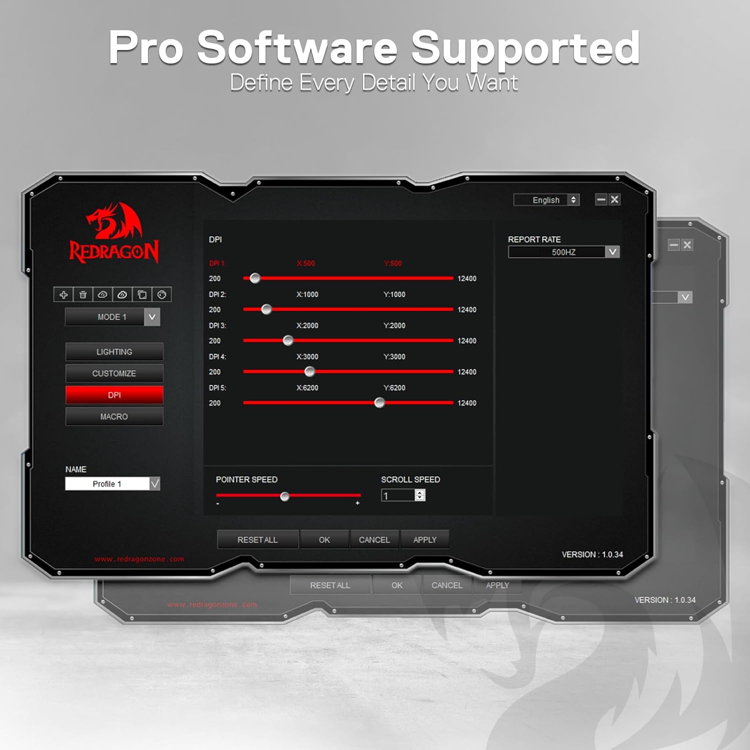 - 5 DPIs Designed for Esports - Equipped with 5 onboard DPI levels (1000/2000/4000/8000/16000) which allow you to switch among different needs at ease. Personalizable DPI ± 100 meets your unique need and shorten the get-used-to time.