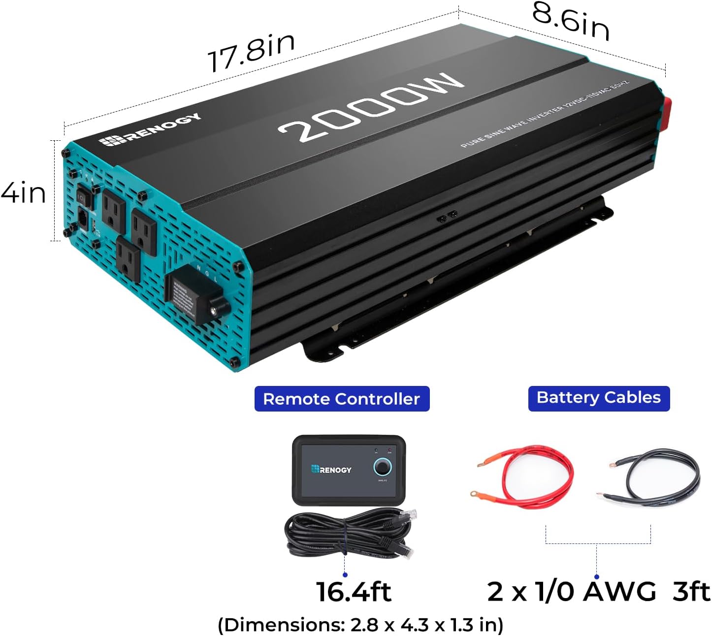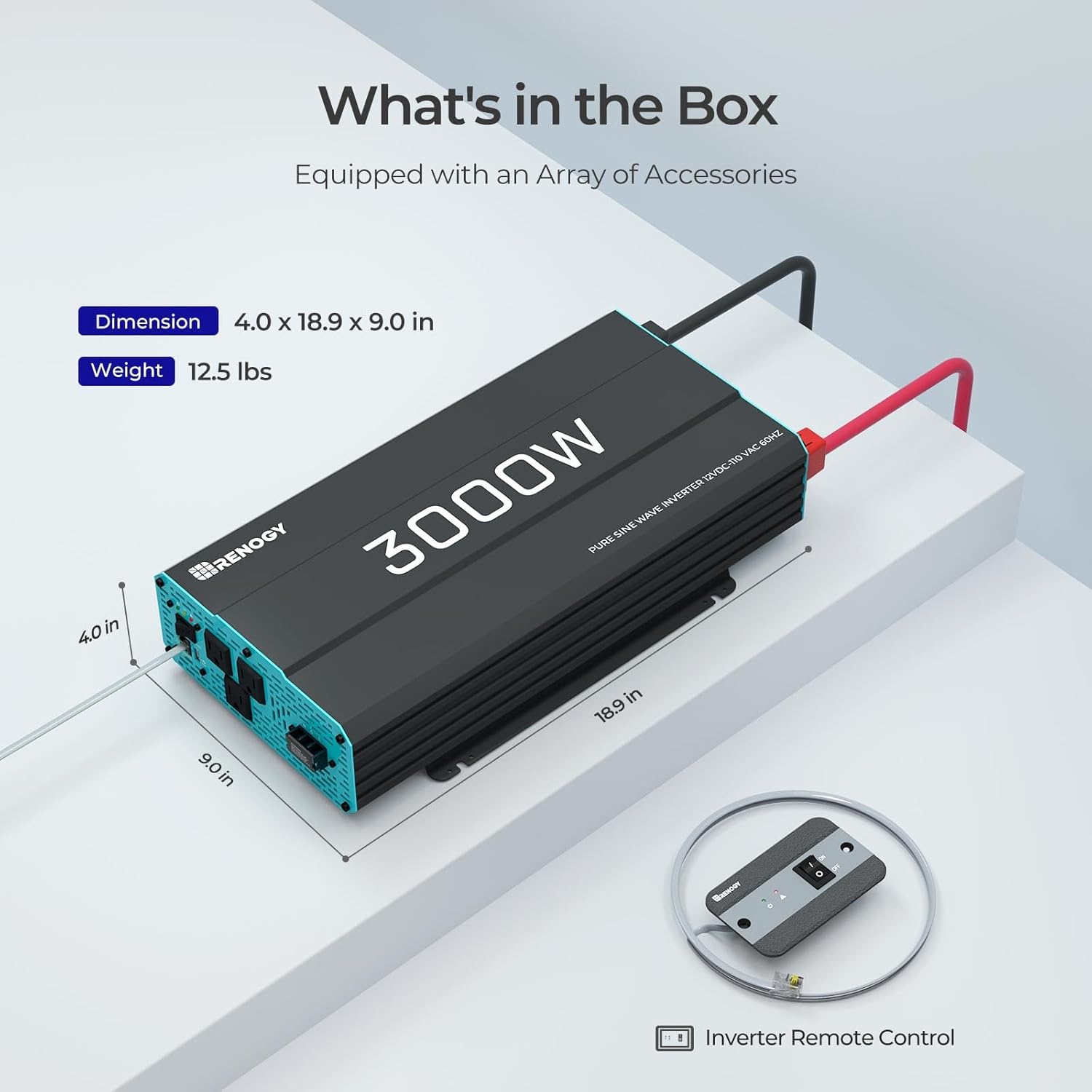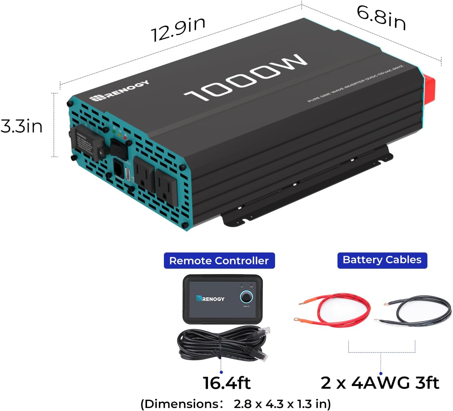 | Included components | 1 x 1000 watt Inverter, 1 x Wired Remote Control, 2 x Inverter Cables, Instruction Manual |