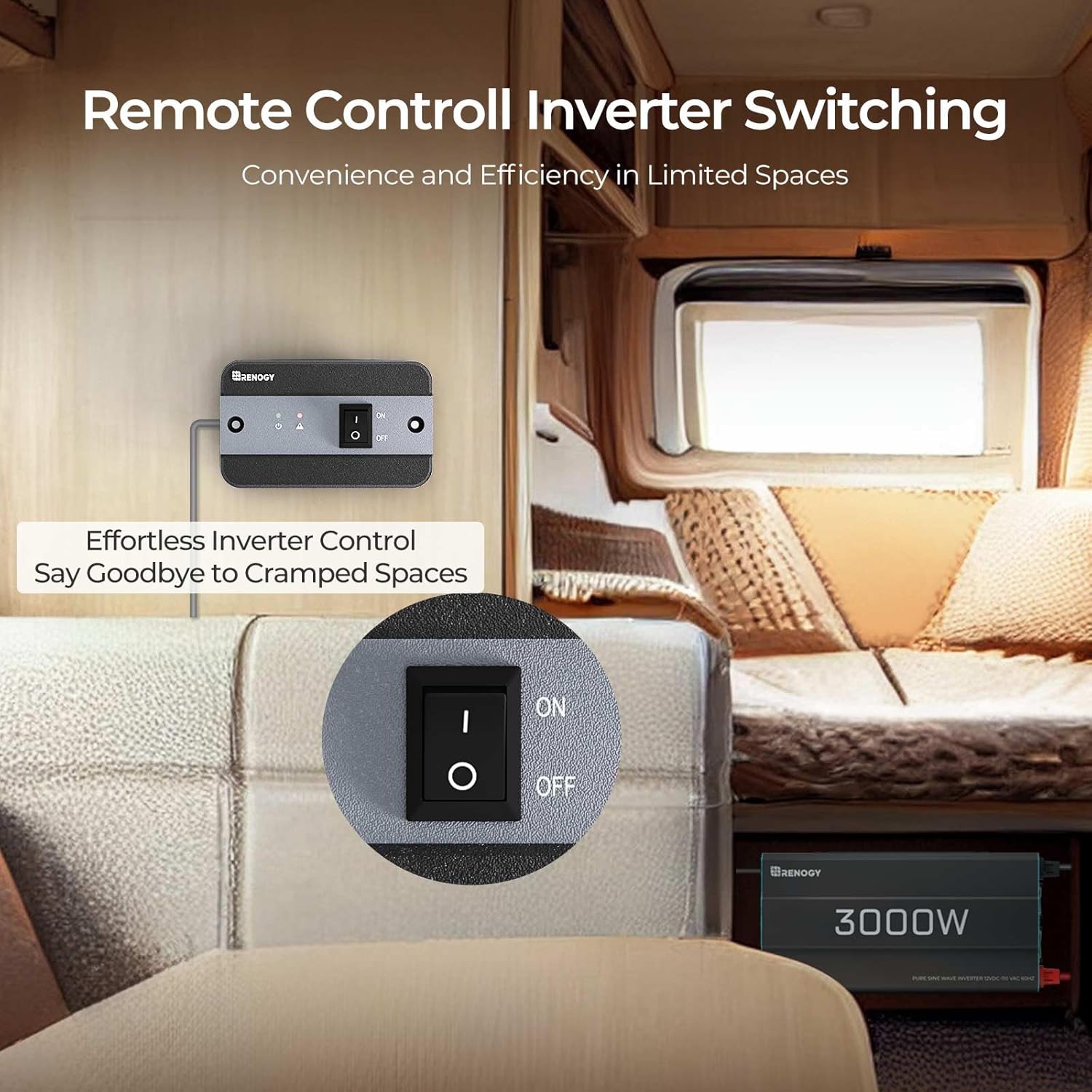 - 【PROTECTION FOR YOUR ELECTRONICS】Renogy 1000w 12v to 110v converter utilizes advanced pure sine wave technology to ensure high-quality AC power equivalent to grid power, safeguarding and prolonging the lifespan of your electronics and appliances. Operates quietly and efficiently, handling high inductive loads without generating buzzing sounds, resulting in smoother, more efficient, and quieter operation.