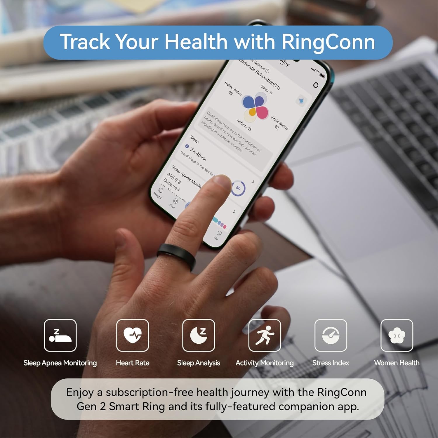 - [No Subscription Fees] Unlock lifetime access to the comprehensive suite of features on the RingConn Smart Health Monitoring App with your RingConn Gen 2 Smart Ring. Experience continuous, real-time health tracking and personalized insights