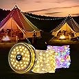 【5 Lighting Modes】 The camping string lights feature 100 LEDs for the string + 38 LEDs for the lantern. Press the switch to cycle through: warm light → colored light → warm/colored alternating → colored string (low brightness) → high brightness → off. Perfect for diverse camping lighting needs.