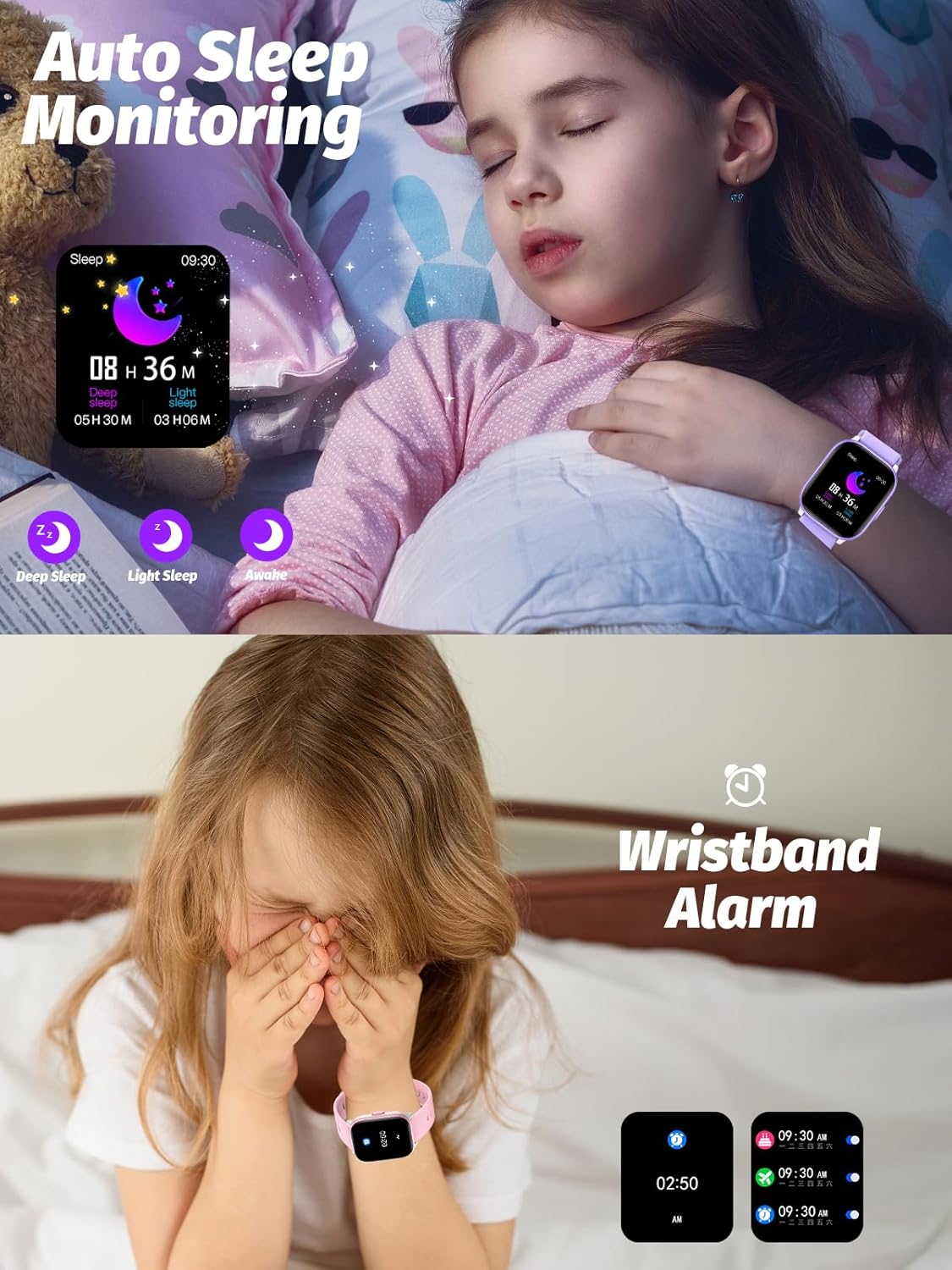 - Heart Rate & Sleep Monitor: The kids fitness tracker can automatically monitor your kids daily real-time heart rate.Help kids form healthy sleep habits with sleep tracking.