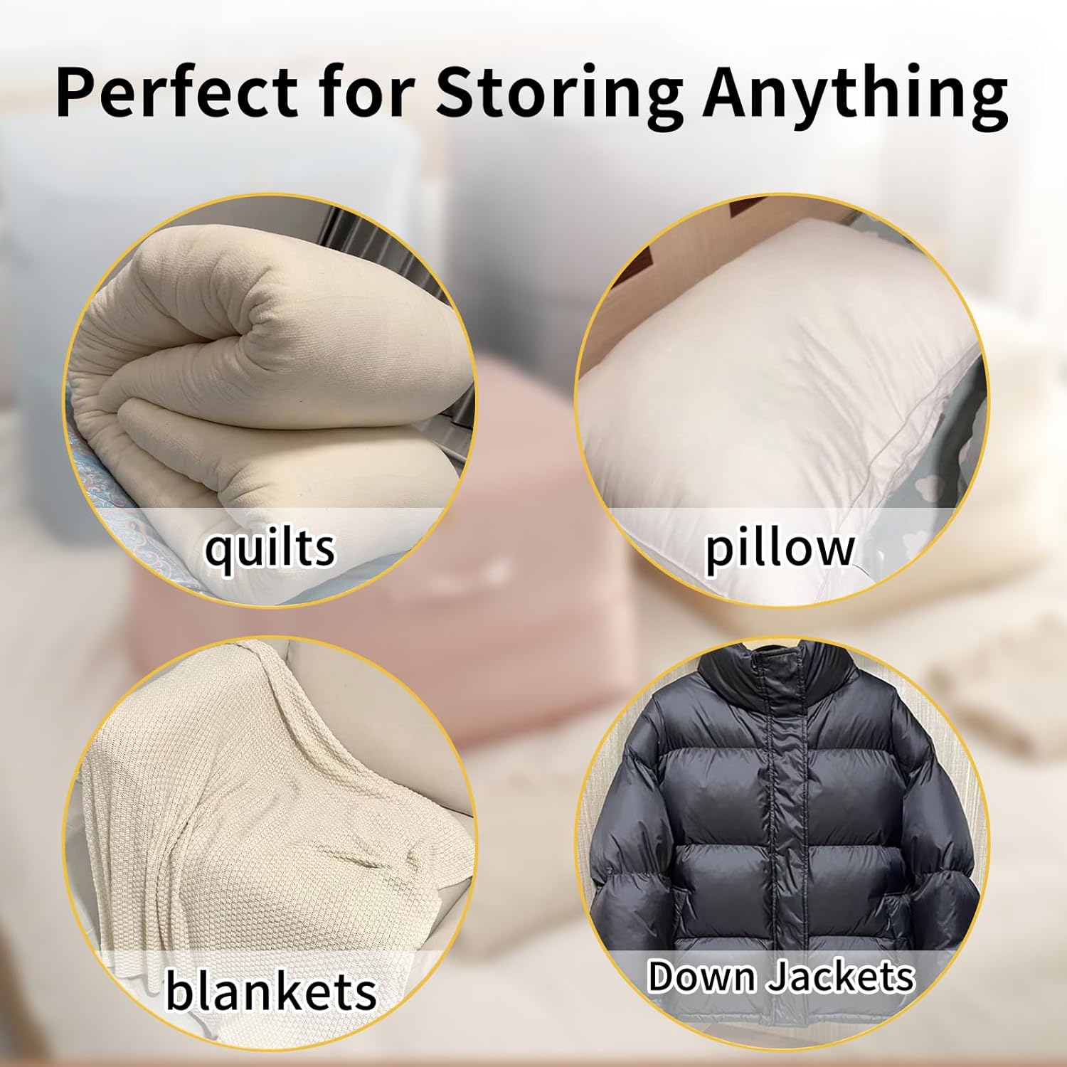 Perfect for storing comforters, quilts, duvets, sweaters, towels, and more. Ideal for home storage, moving, travel, or dorm life—anywhere you need more room and better organization.