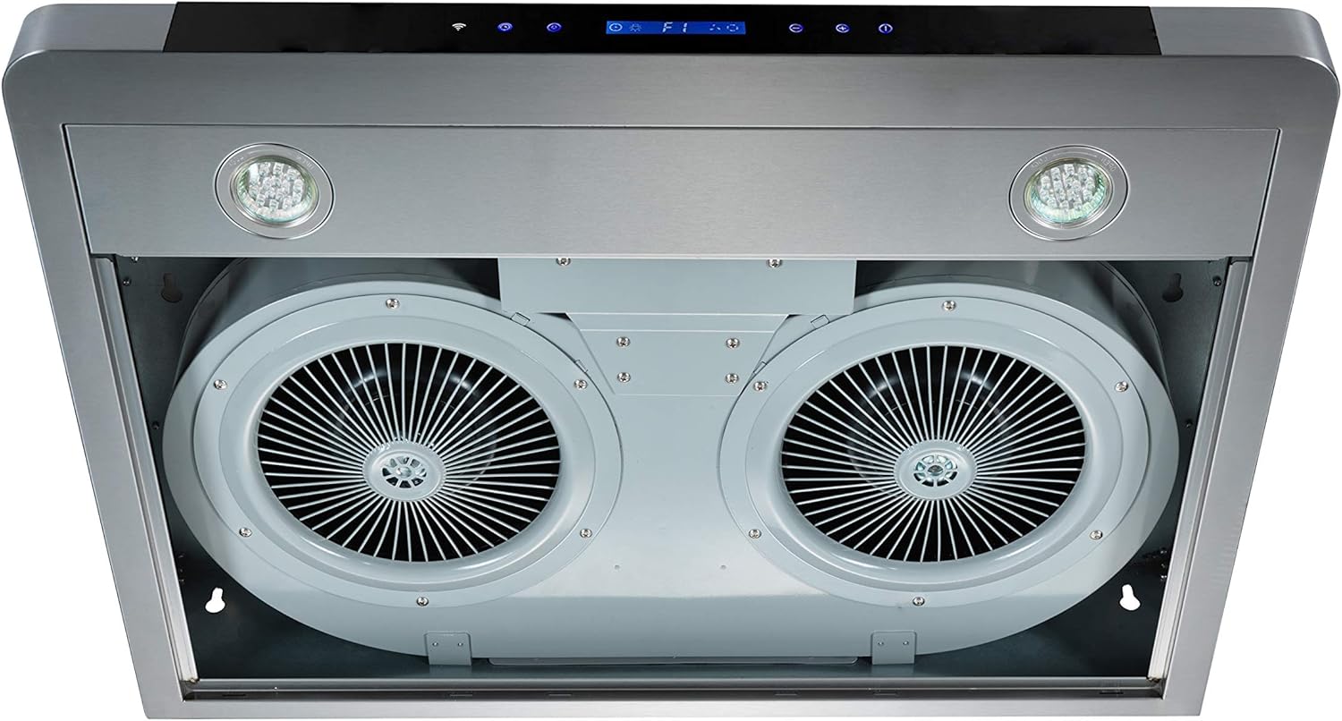- Two Powerful Centrifugal Motors 860CFM Suction Performance Four Speeds Digital Touch Control