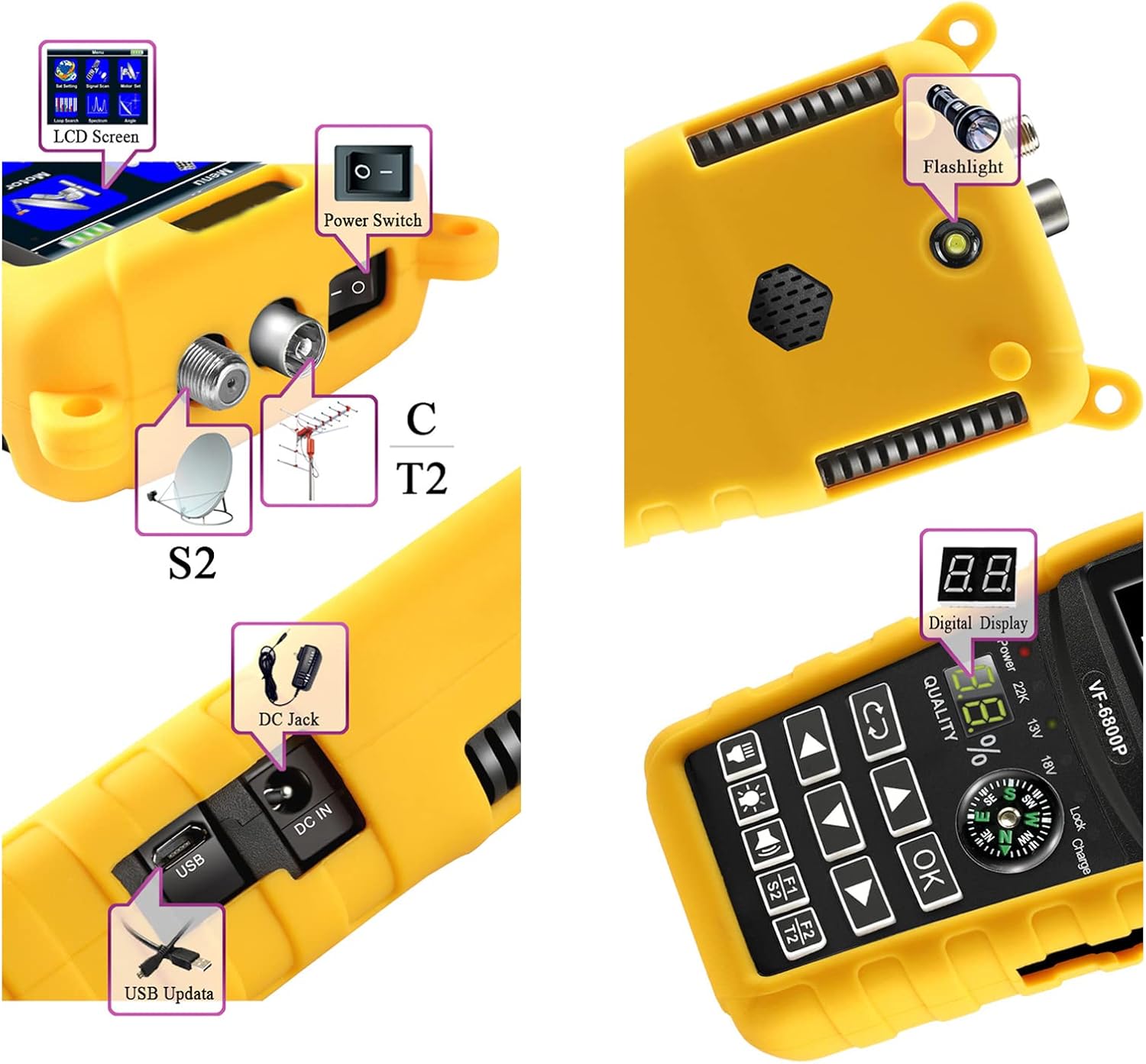 • EXTENSIVE COMPATIBILITY: Satellite finder fully supports S, S2, T, T2, C, MPEG2, MPEG4 compatible.