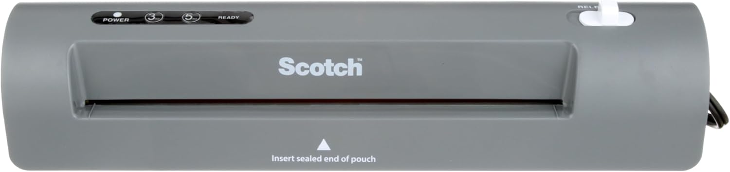The Scotch™ Thermal Laminator TL901 features a two roller system with two heat settings that allows you to laminate items up to 9 inches wide and use laminating pouches up to 5mil thick. You can laminate letter-size, legal-size, business-card size, and photo-size papers, all with crisp, clear results. This laminator is photo-safe and features a jam release lever to quickly release items if they get caught in the machine. Weighing only 5.4 pounds and taking up only 9 inches of counter space, it is portable and easy to stow away when not in use. When paired with Scotch™ thermal laminating pouches, you can be confident that your documents will look their best and important information will show through.