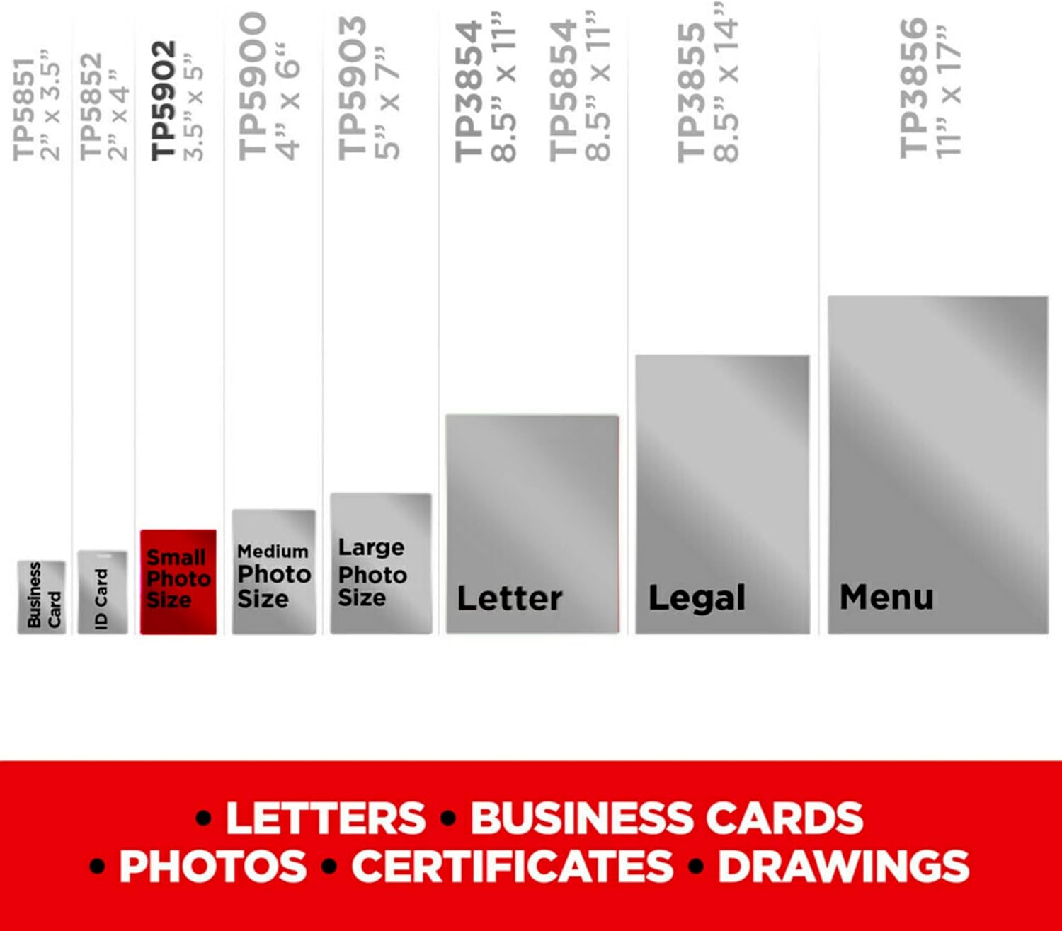 Scotch thermal laminator protects documents you handle frequently. This thermal laminator that will laminate items up to 9 in wide. It is a 2 roller system that has two temperature settings. It is photo quality and will laminate up to 5 mil thickness pouches.