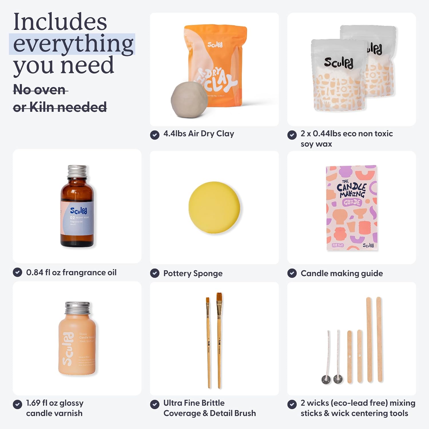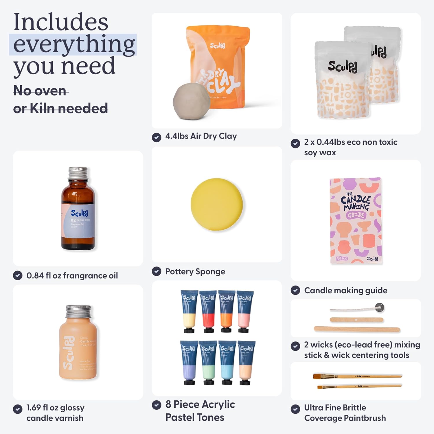 | Included Components | Clay, Wax, Fragrance, Tools, Paint, Wick, Brush, Instructions |