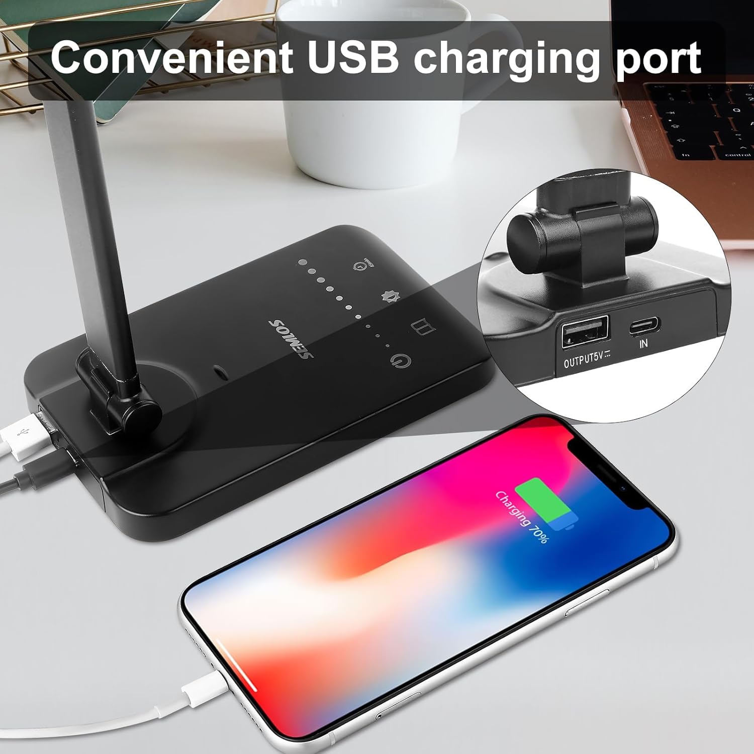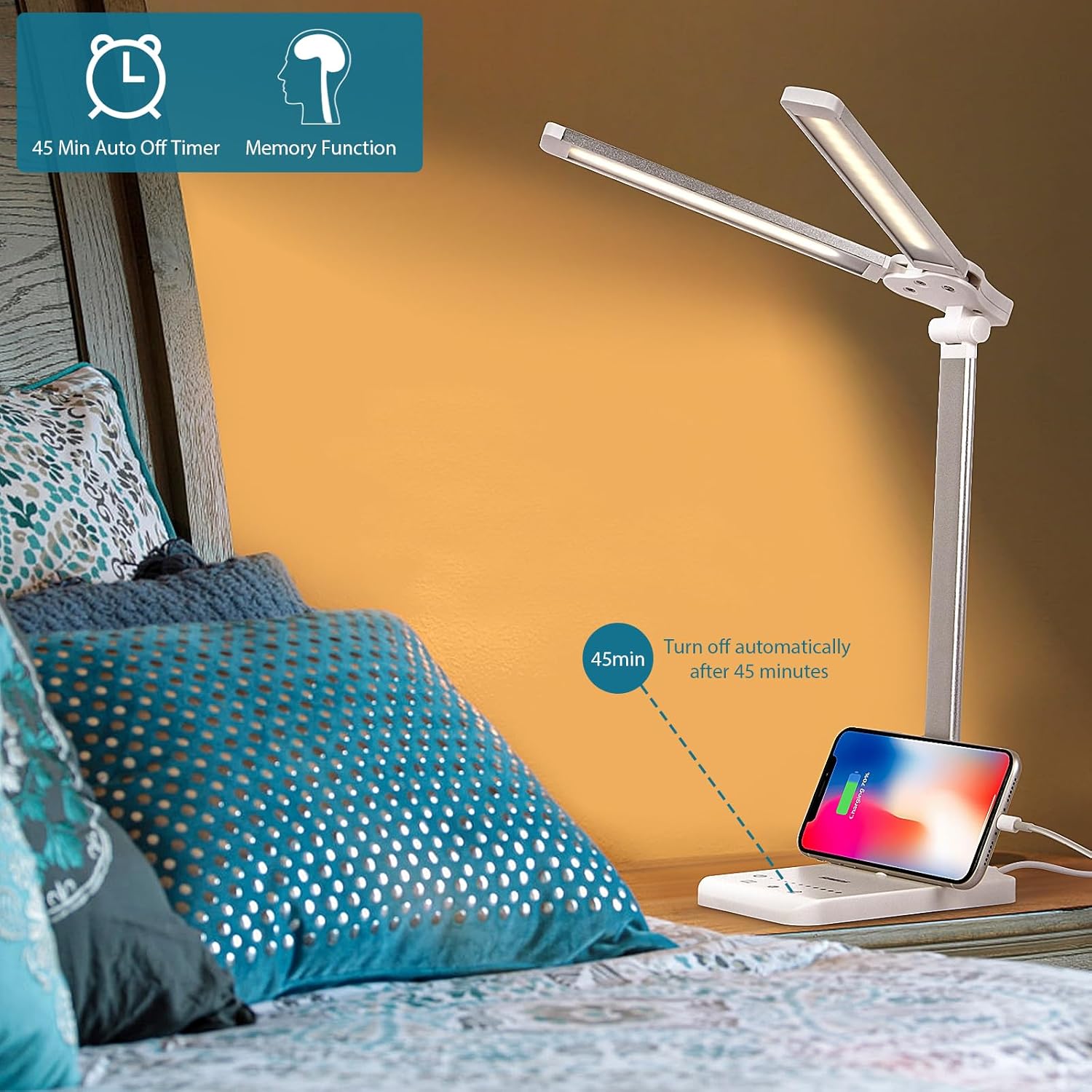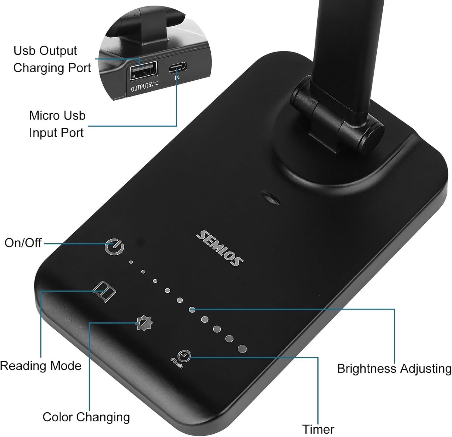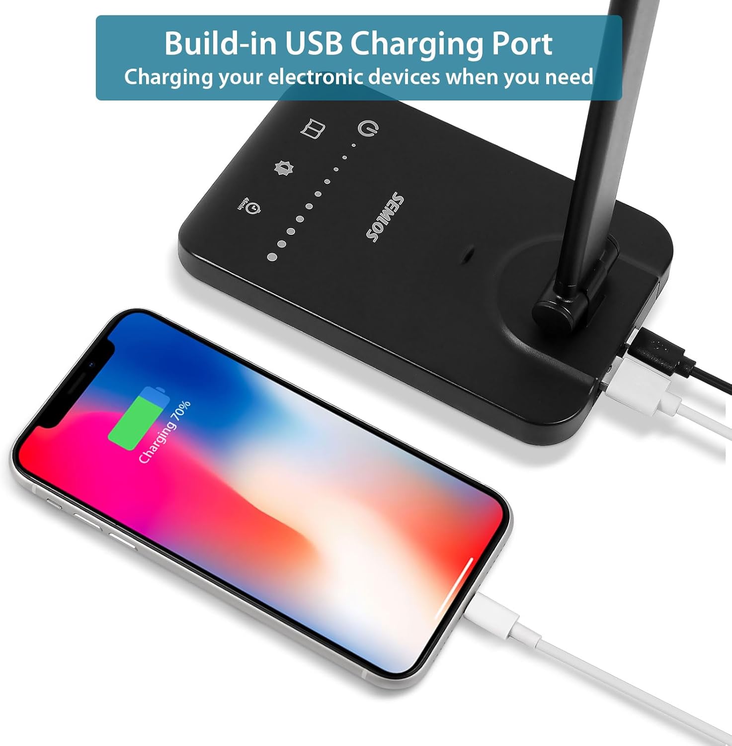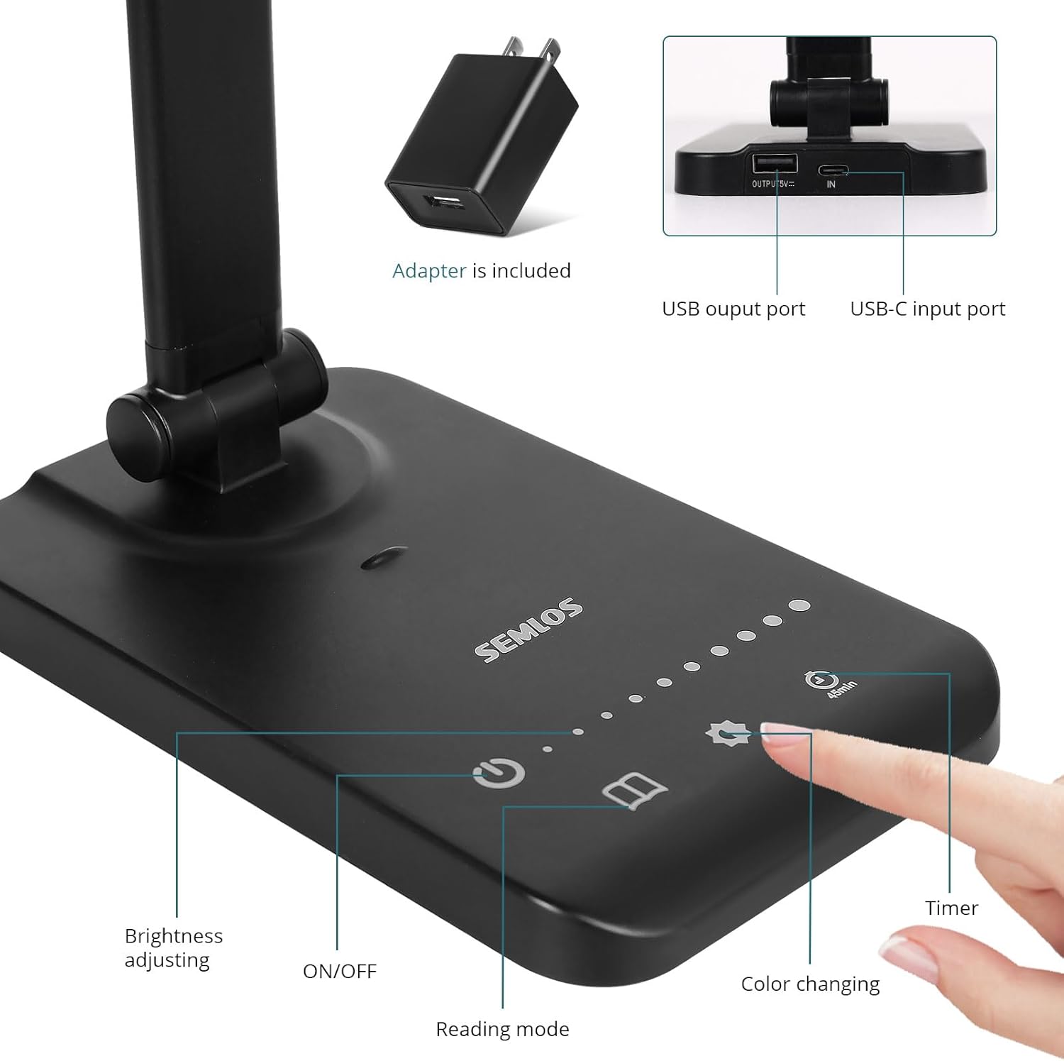Semlos LED Desk Lamp for Home Office, Eye-Caring Table Light, 25 Lighting Modes, 45 Min Auto Timer, Touch Control, Dimmable, White