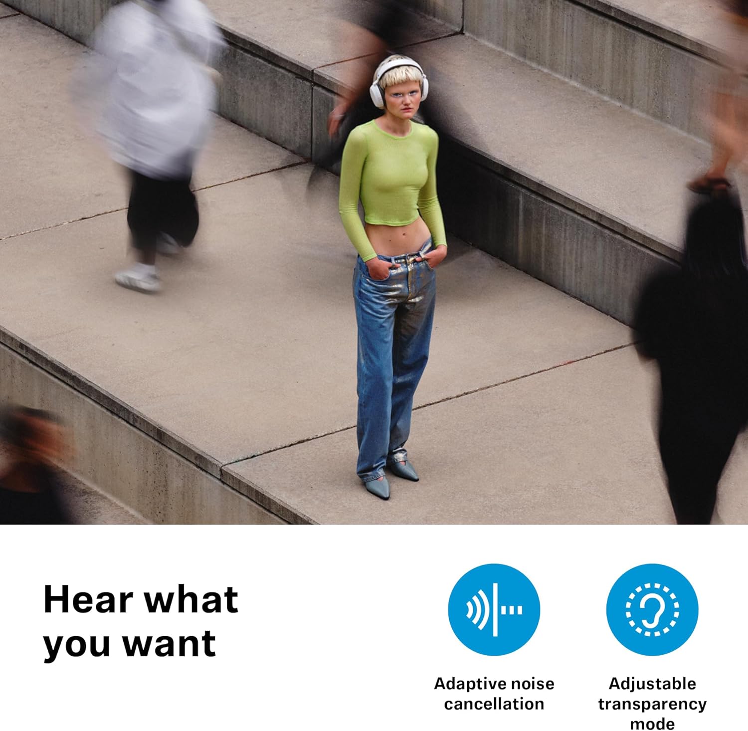 - Stay immersed in your music: Thanks to the headphone's Adaptive Noise Cancellation, you stay distraction-free - and with the Adjustable Transparency Mode you stay in touch with the world around you.