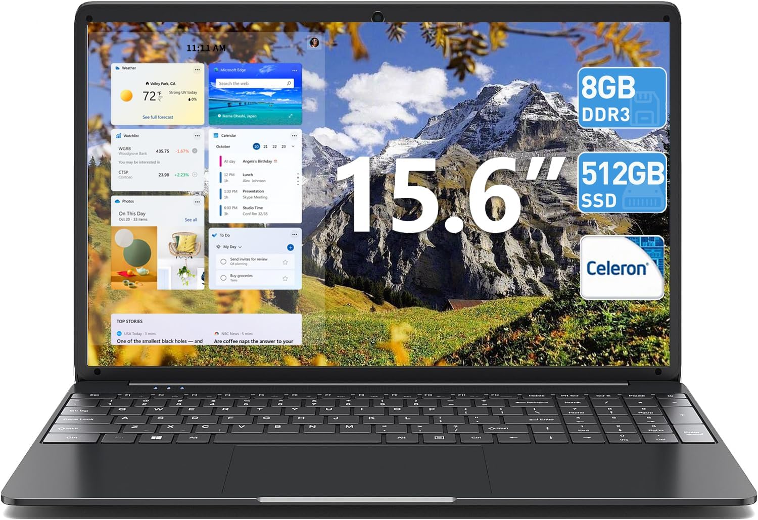 SGIN Laptop, 15.6 Inch Laptops Computer with 8GB DDR3 512GB SSD I3 Processor, Windows 11 Home, HDMI, Wi-Fi 5, 7000mAh, Numeric Keypad, USB3.0, Bluetooth4.2, Type-C(Black)