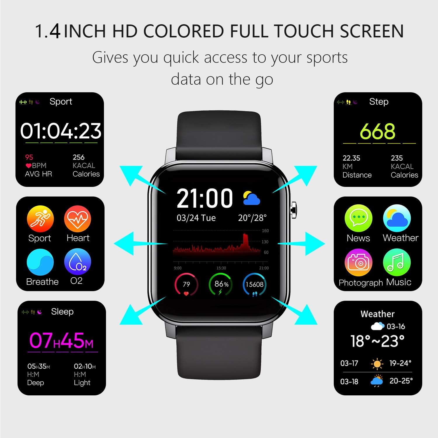 Smart Watch for Men Women with 1.4" Touch Screen, Activity Fitness Tracker Heart Rate Sleep Monitor, 5ATM Waterproof Pedometer Smartwatch Step Counter for Android iOS Phone