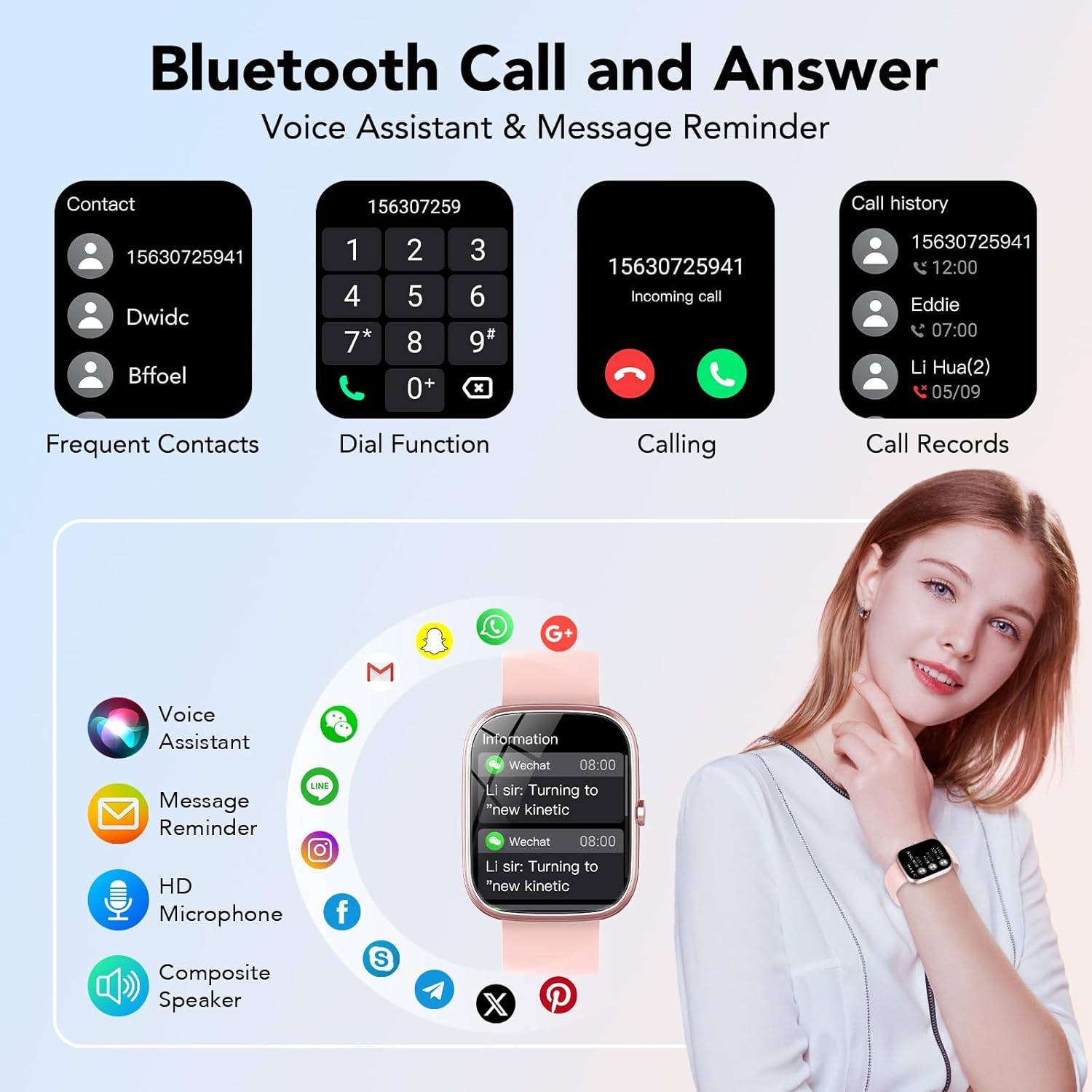Smart Watch for Women (Answer/Make Call), 1.91" Smartwatch Fitness Activity Tracker, 100+ Sports Modes/Heart Rate/Sleep Monitor/Pedometer/Calories, IP68 Waterproof Fitness Watch for Android iOS