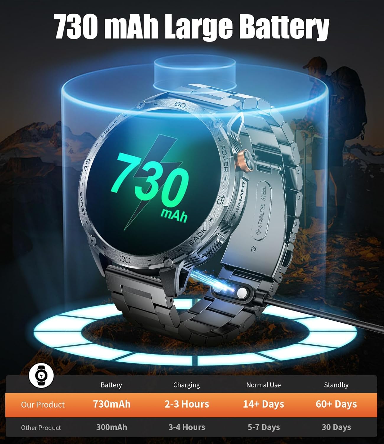 【Your Perfect Companion】Military smart watch are designed to fit perfectly with your active lifestyle, combining functionality with style. Your comfort and satisfaction is our top priority. If you have any questions or feedback, please feel free to contact us. We promise to respond within 24 hours and provide you with a satisfactory solution.