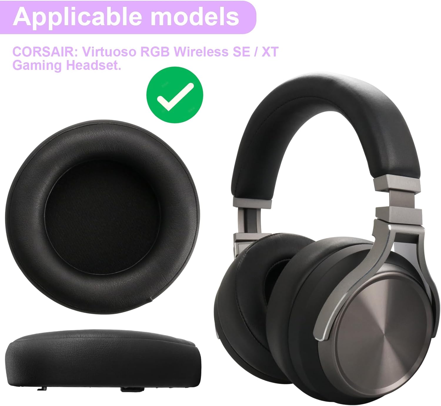 Sodorous Virtuoso RGB Ear Pads Replacement Compatible with Corsair Virtuoso RGB Wireless XT SE Gaming Headset, Protein Leather & Soft Memory Foam Ear Cups Cover