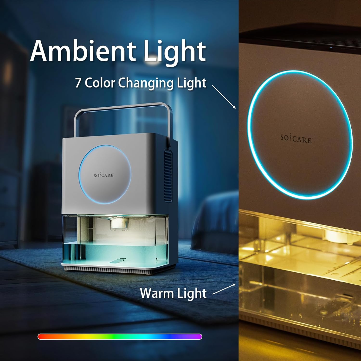 SOICARE Dehumidifier, 3.2L Water Tank, 7-Colour LED Night Light, HEPA Filter, 220V/50W, White