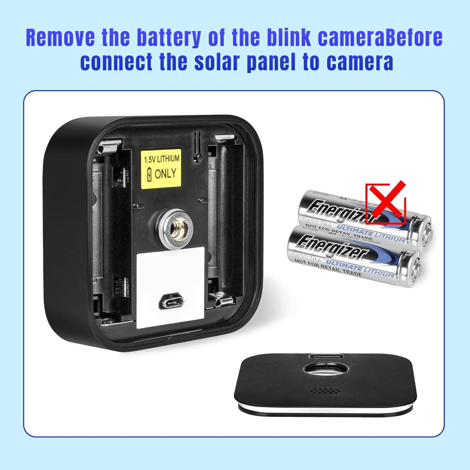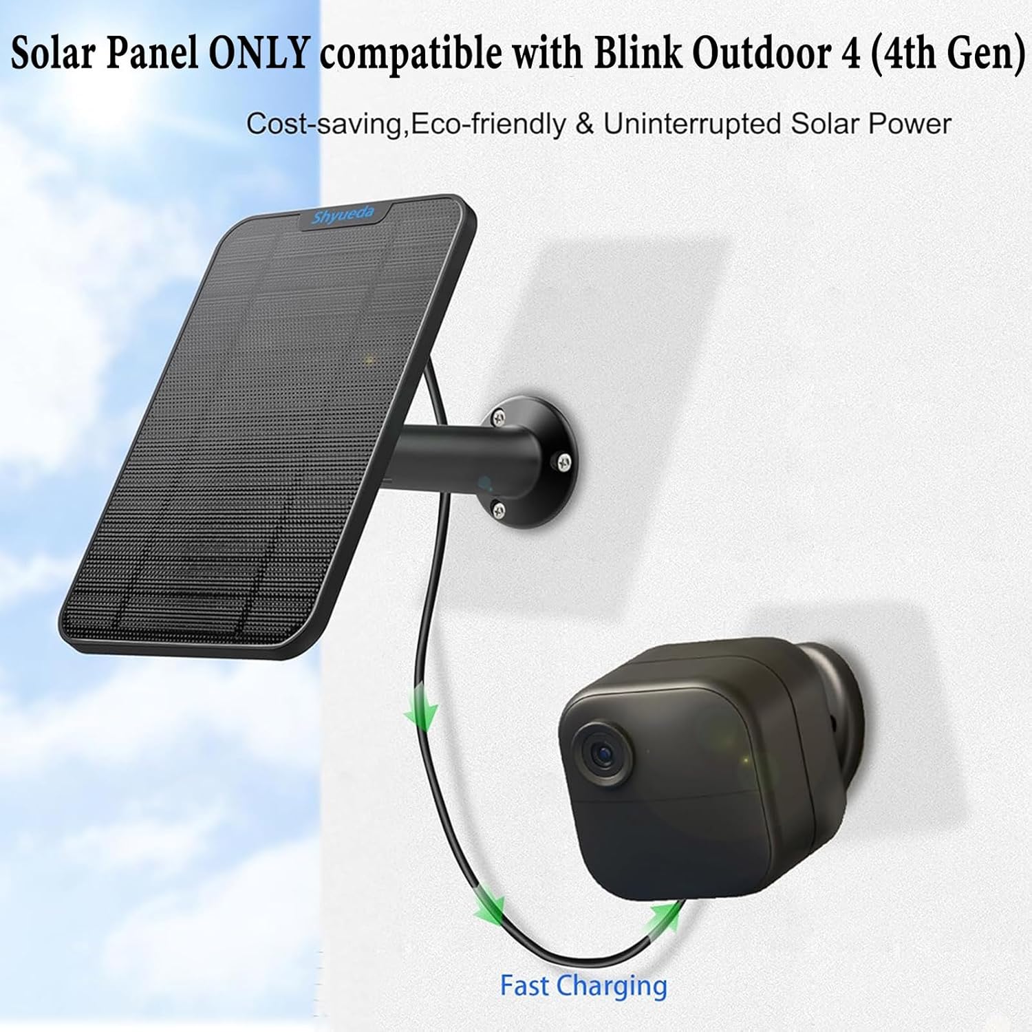 - Solar Panel - This solar panel ONLY compatible with Blink Outdoor 4 (4th Gen) and DC 5V battery camera with type-C port. Please take off the battery of your camera before connect the solar panel to the camera
