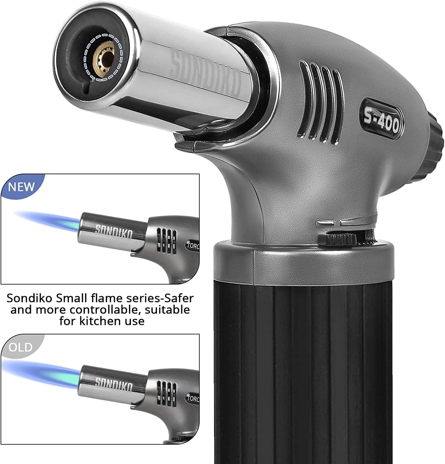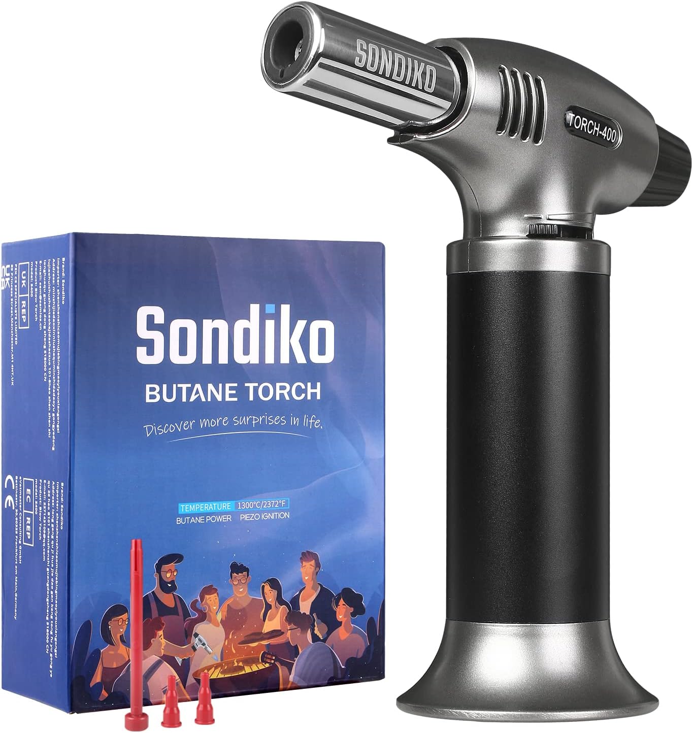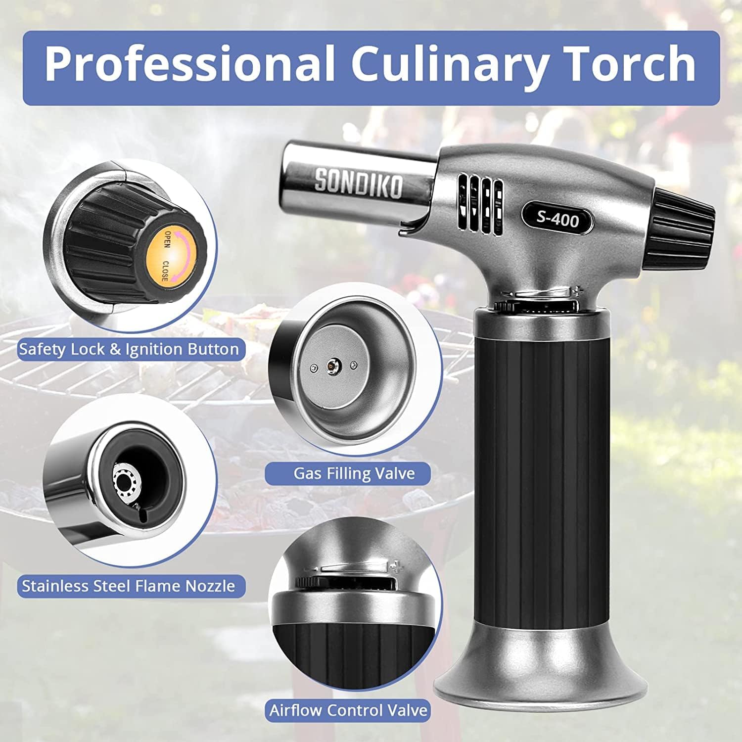 Sondiko Butane Torch Lighter, Soldering Torch, Refillable Kitchen Torch, Cooking Torch with Safety Lock, Adjustable Flame Blow Torch for Creme Brulee, Welding and Baking(Butane Gas is Not Included)