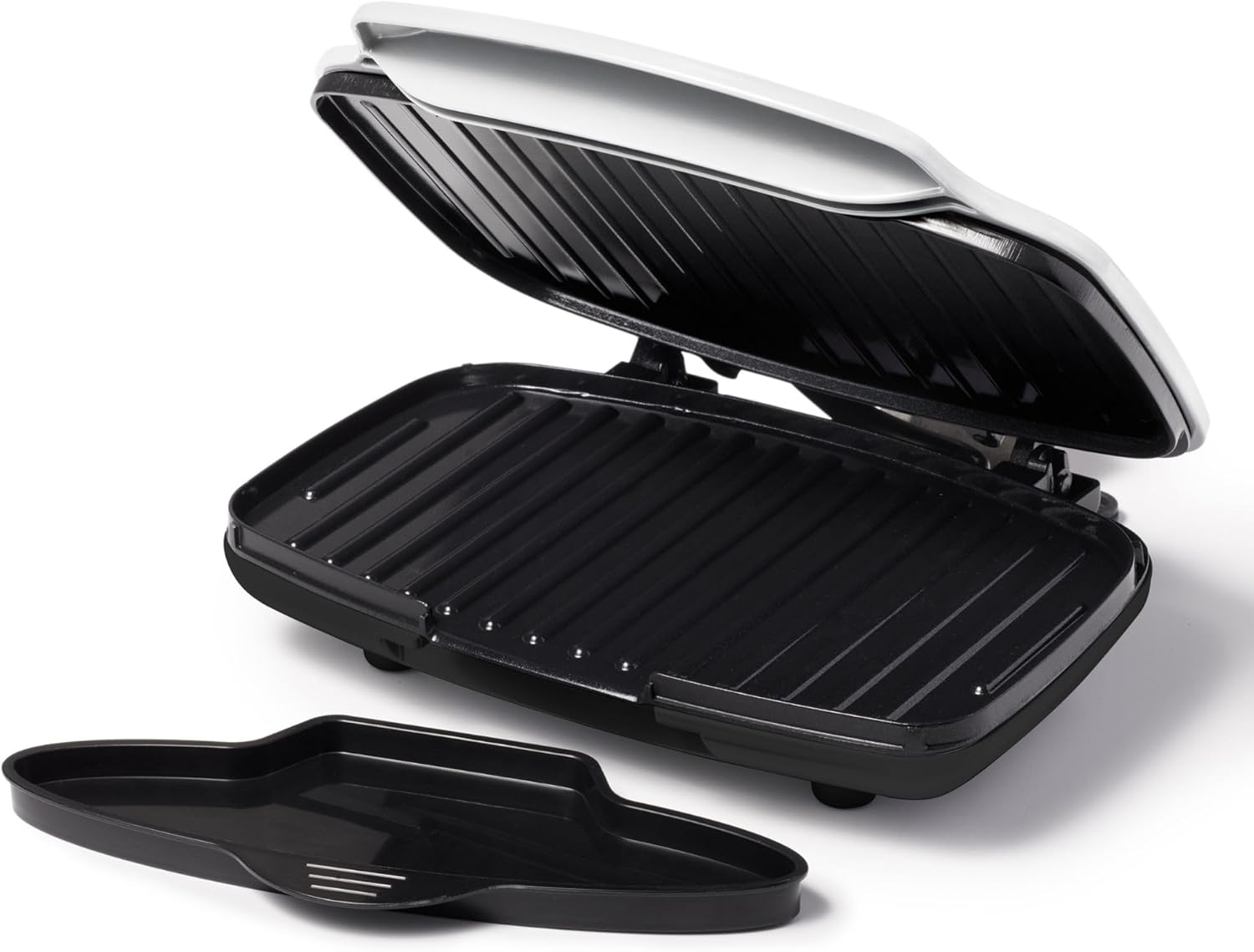 - Removable fat and oil collection compartment simplifies cleanup after cooking.