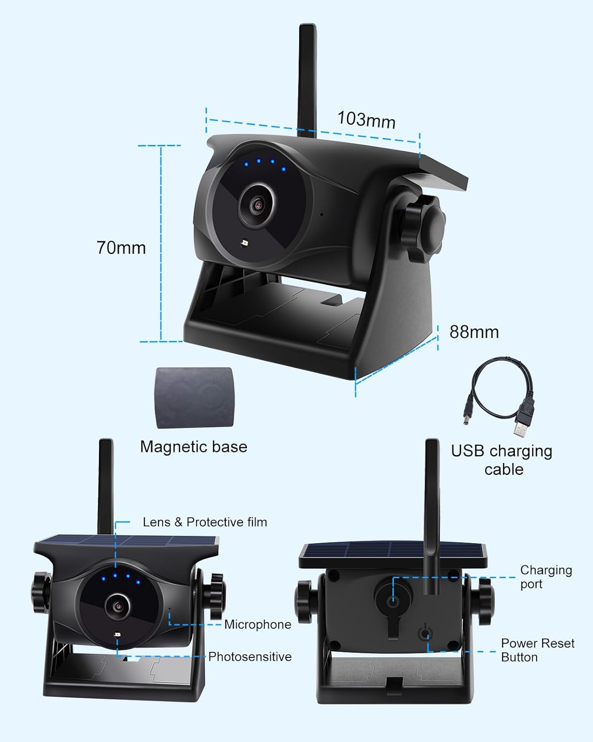 - 【Sustainable Solar Power】This solar-powered camera only requires 2 hours of sunlight per day for continuous, year-round operation. The 3000mAh rechargeable battery supports multiple charging methods (USB, plug-in, car charger), ensuring it’s always ready to go—perfect for long-haul drivers and city commuters alike