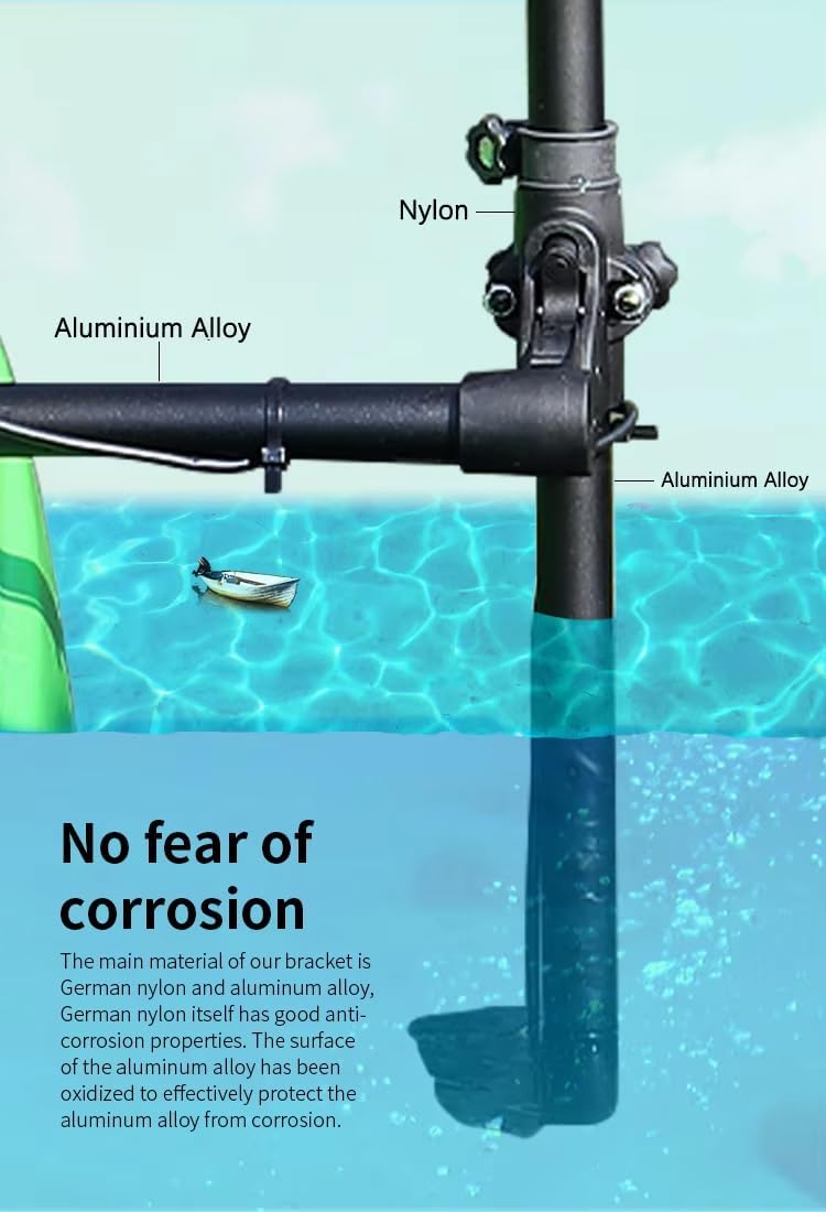• Freedom Adjustment: Fish finder transducer mount 360° adjustable transducer detection direction; Adjustable depth of the transducer into the water; Adjustable distance between transducer pole and boat.