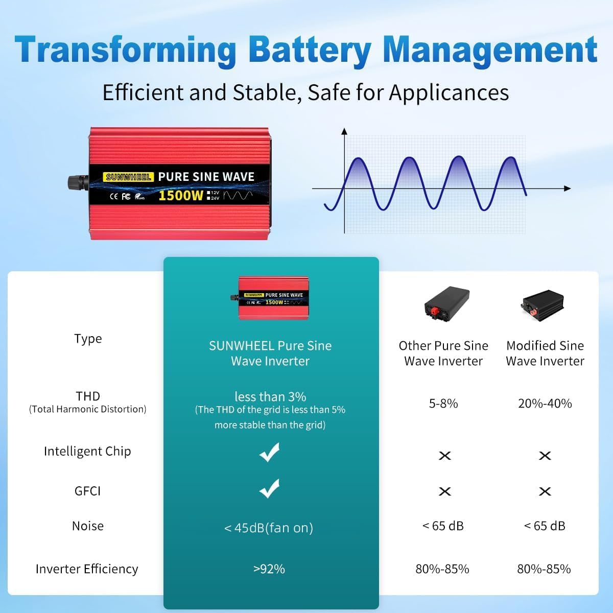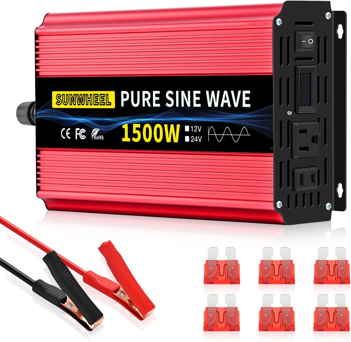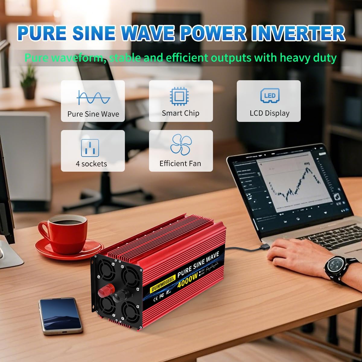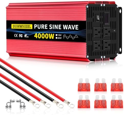 SUNWHEEL 4000W Pure Sine Wave Inverter, 12V DC to 110V/120V AC Power Inverter for RV、Microwave、Off Grid、Truck、Refrigerator、Air Conditioner with 4 AC outlets and LCD Display