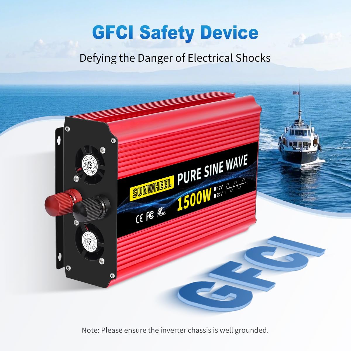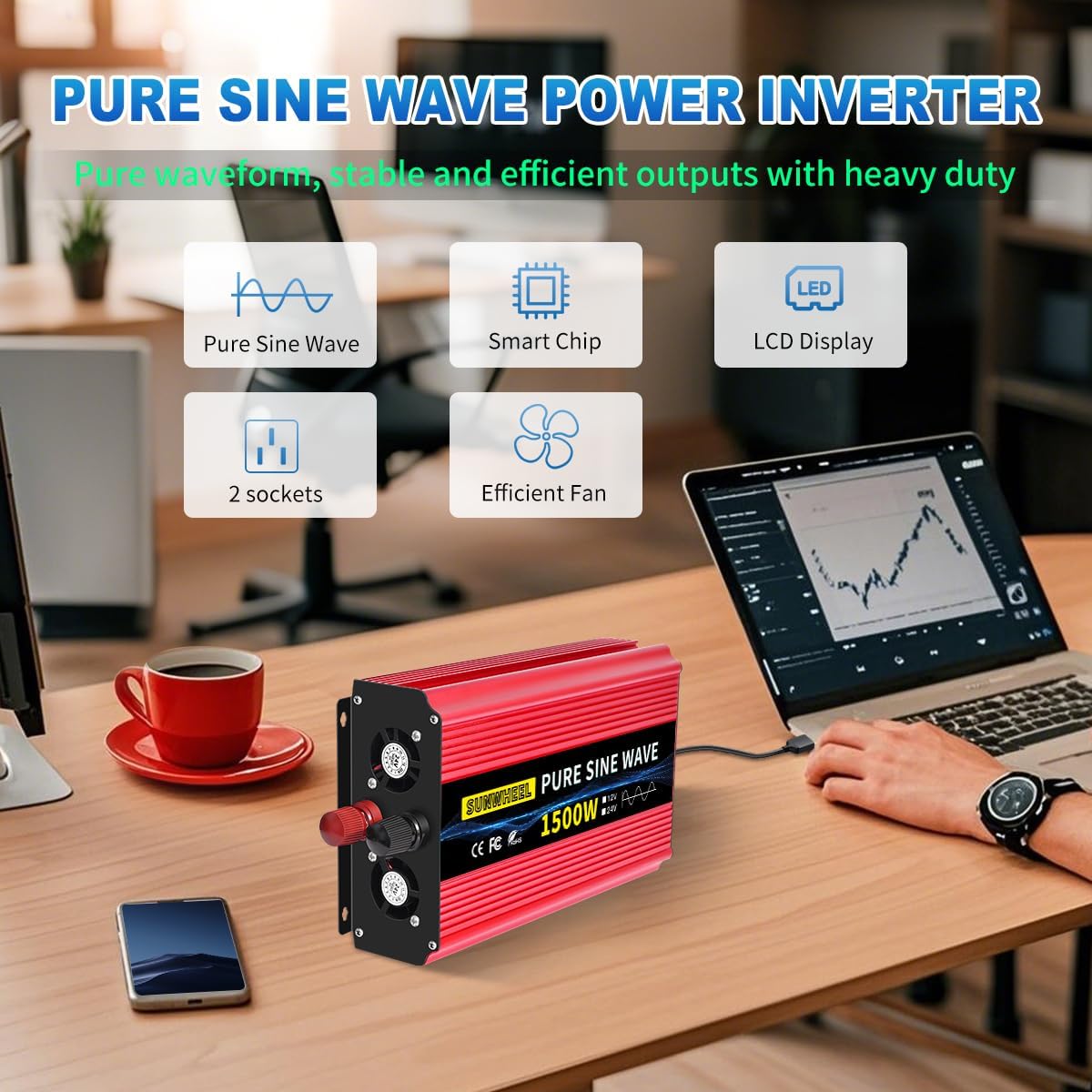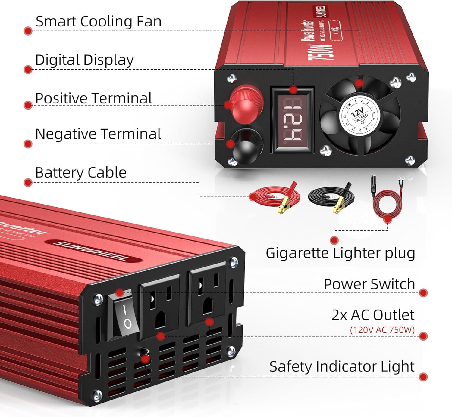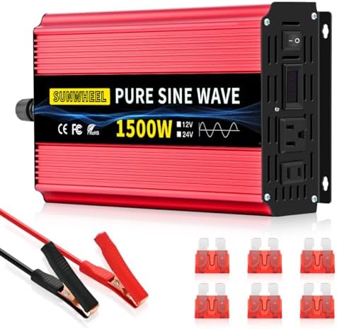 SUNWHEEL 4000W Pure Sine Wave Inverter, 12V DC to 110V/120V AC Power Inverter for RV、Microwave、Off Grid、Truck、Refrigerator、Air Conditioner with 4 AC outlets and LCD Display