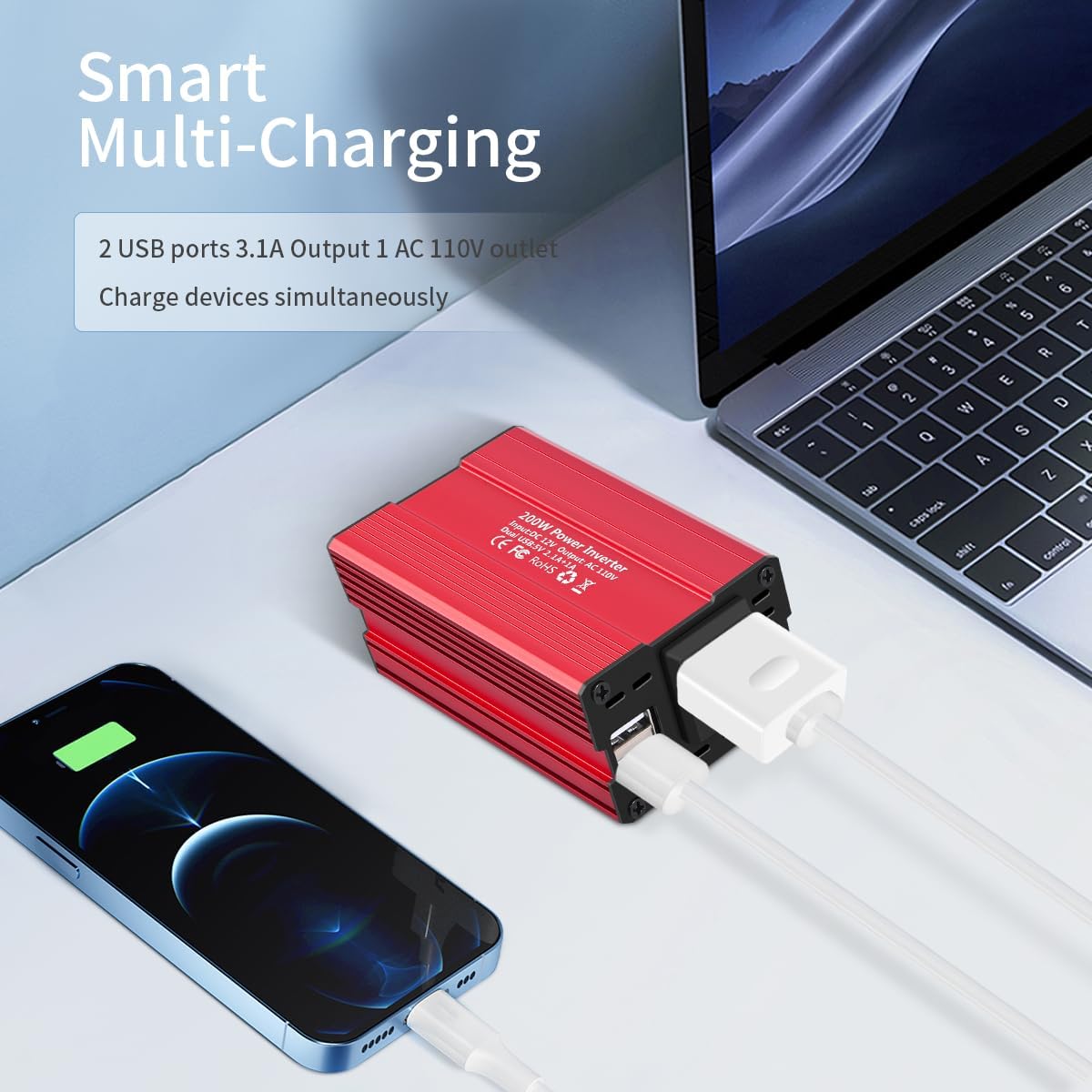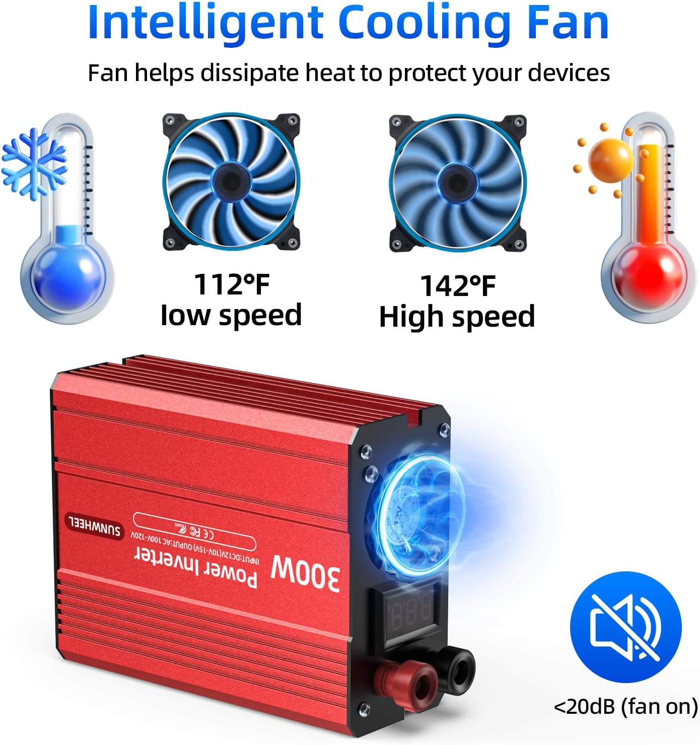 - 【Durable、Strong、Quiet】We include 2 pairs of fuses in case of a problem. The fuse is made of copper wire material, which is not only easy to dissipate heat and durable, but also can stably and efficiently output pure sine waves. The aviation-grade aluminum housing, which is not only drop resistant but also lightweight, allowing you to use it anytime and anywhere. The intelligent cooling fan is ultra-quiet while keeping the unit cool during extended use.