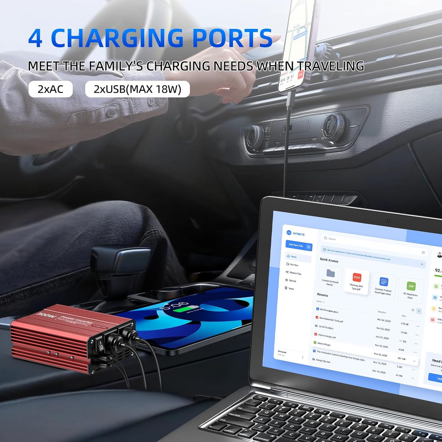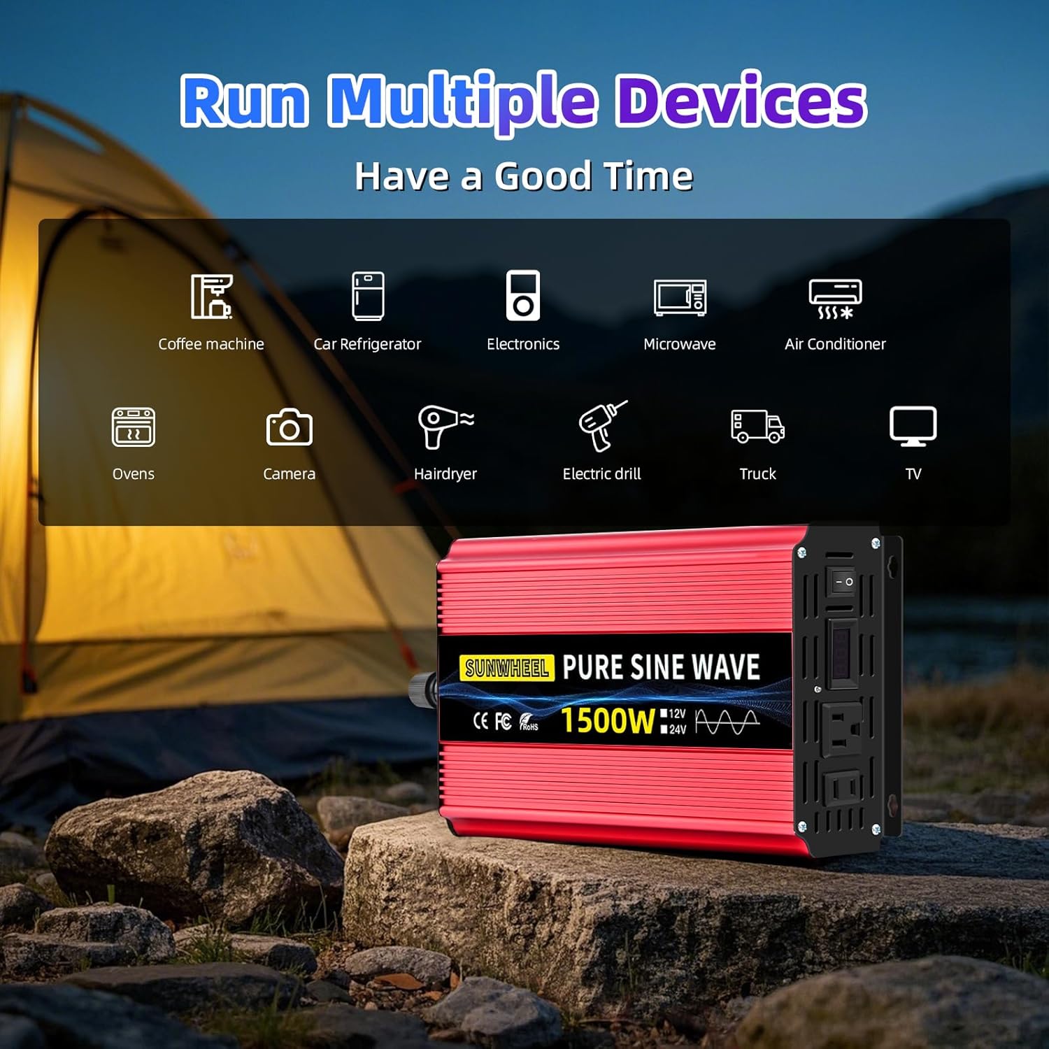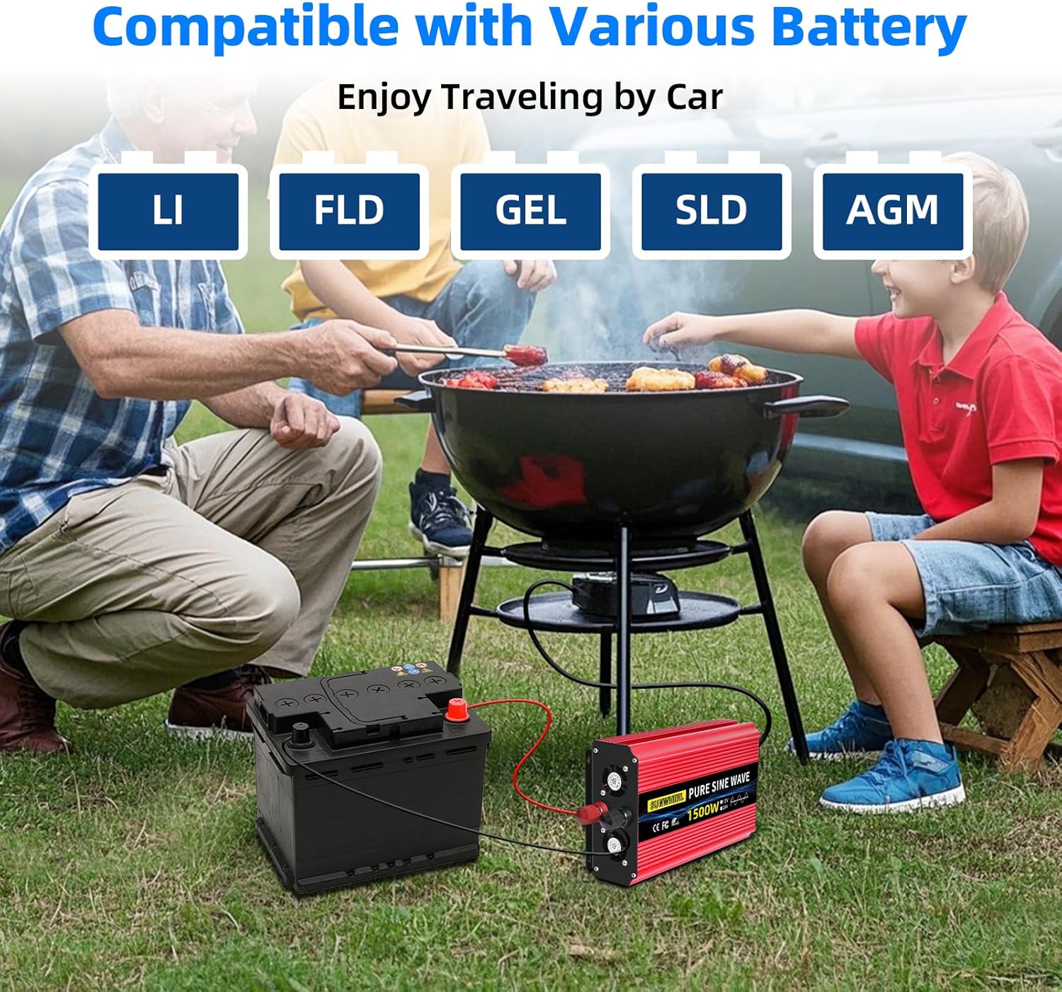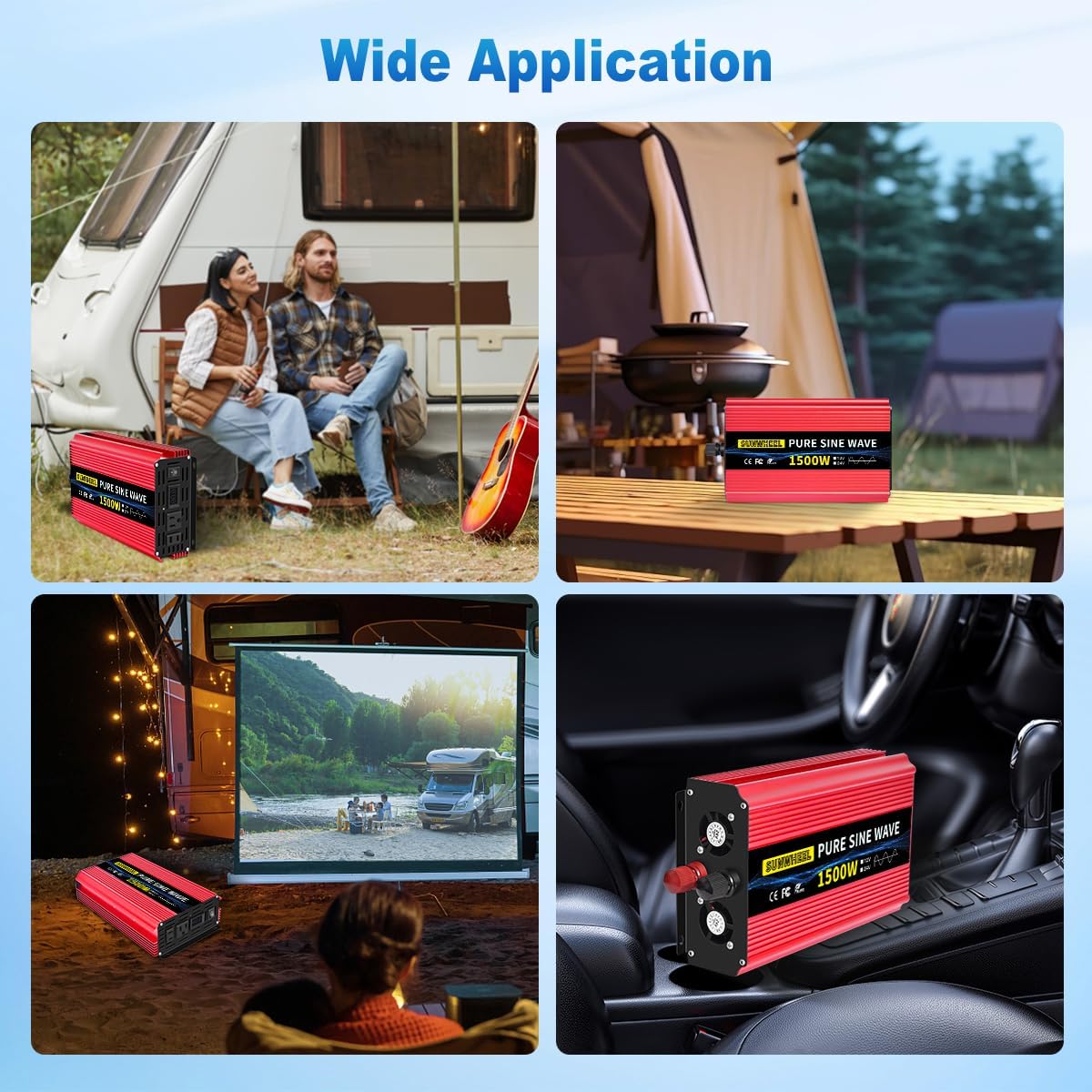- 【Widely Used】The pure sine wave inverter, you can use it to charge your computer, phone, light bulb and other low-power devices, as well as connect it to your RV, truck,vehicles, solar energy, drill, microwave, refrigerator and other high-power devices, so you don't need to worry about the stability of the power and current output of the device. In addition, in case of emergency situations such as power outages caused by storms, you can easily cope with power issues with our 4000 watt pure sine wave inverter. It perfect for an off-grid camping setup