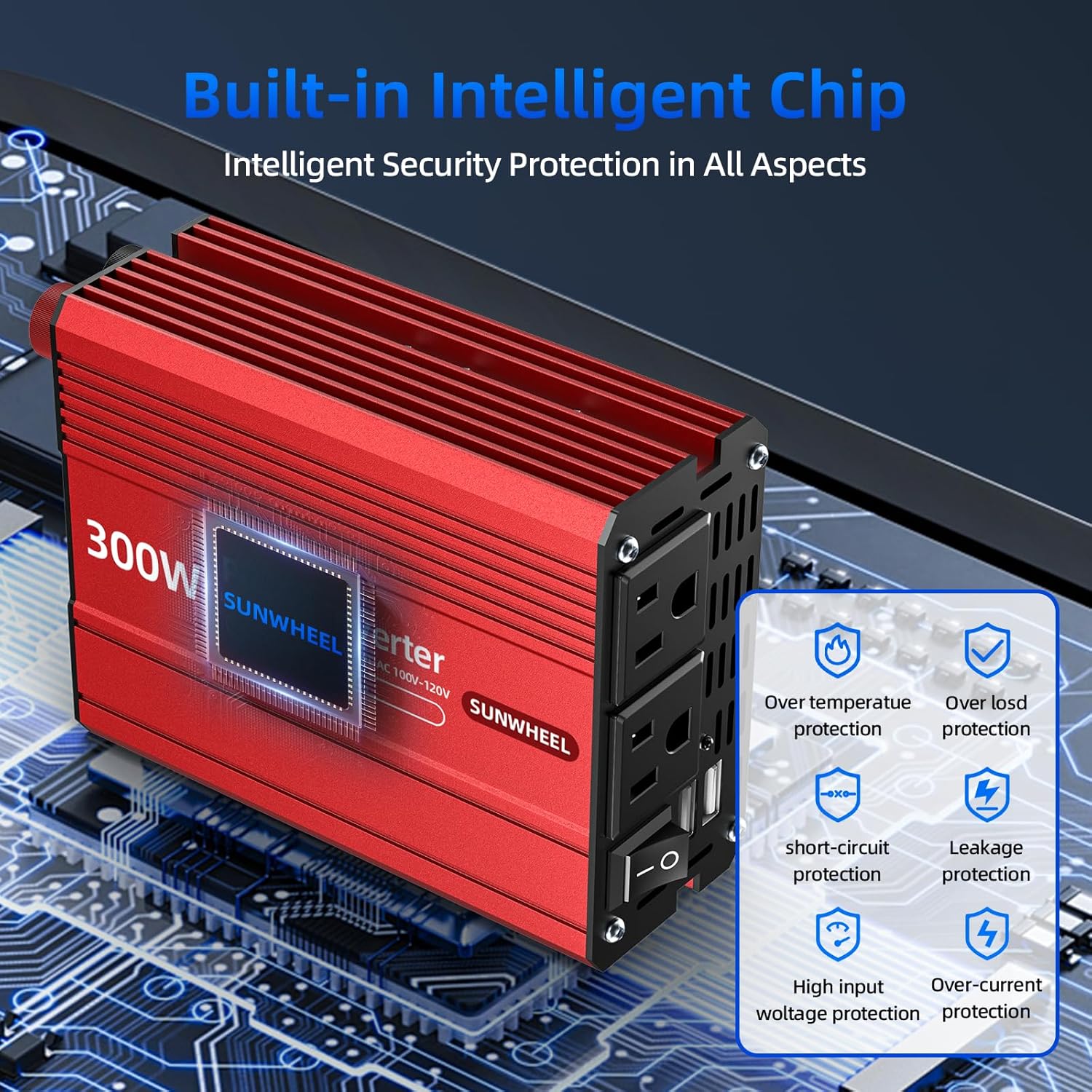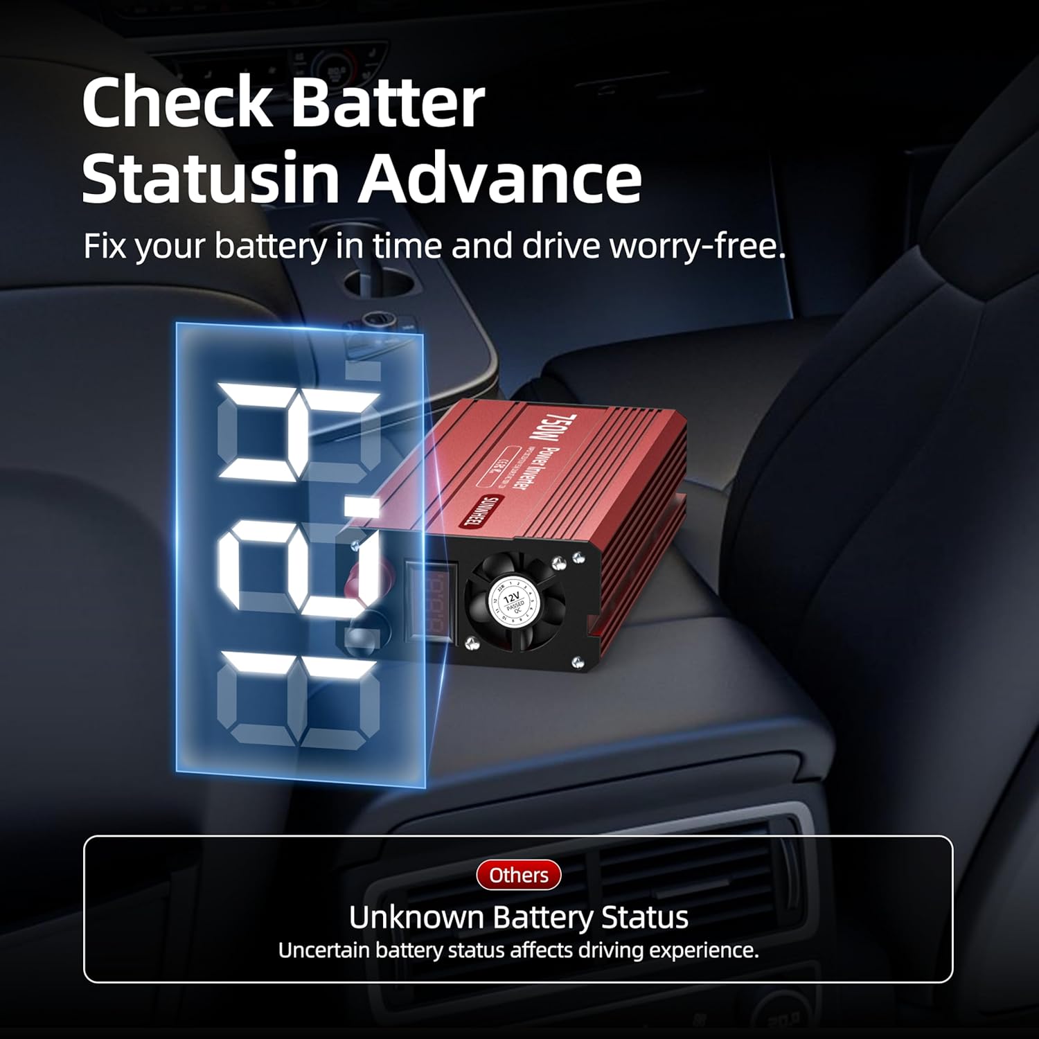 - 【Comprehensive Security Guarantee】Equipped with LED indicator lights for undervoltage and overvoltage protection, overheating protection, overload protection, and short circuit indication. There is an intelligent chip installed inside, which can automatically recognize the safety problems, if there is over-voltage, overheating and other problems will automatically activate the protection mechanism, effectively preventing your equipment from being damaged, so you don't need to be next to the machine all the time. In addition, the LCD screen will display the voltage changes in real time, so you know the voltage changes of this inverter in real time.