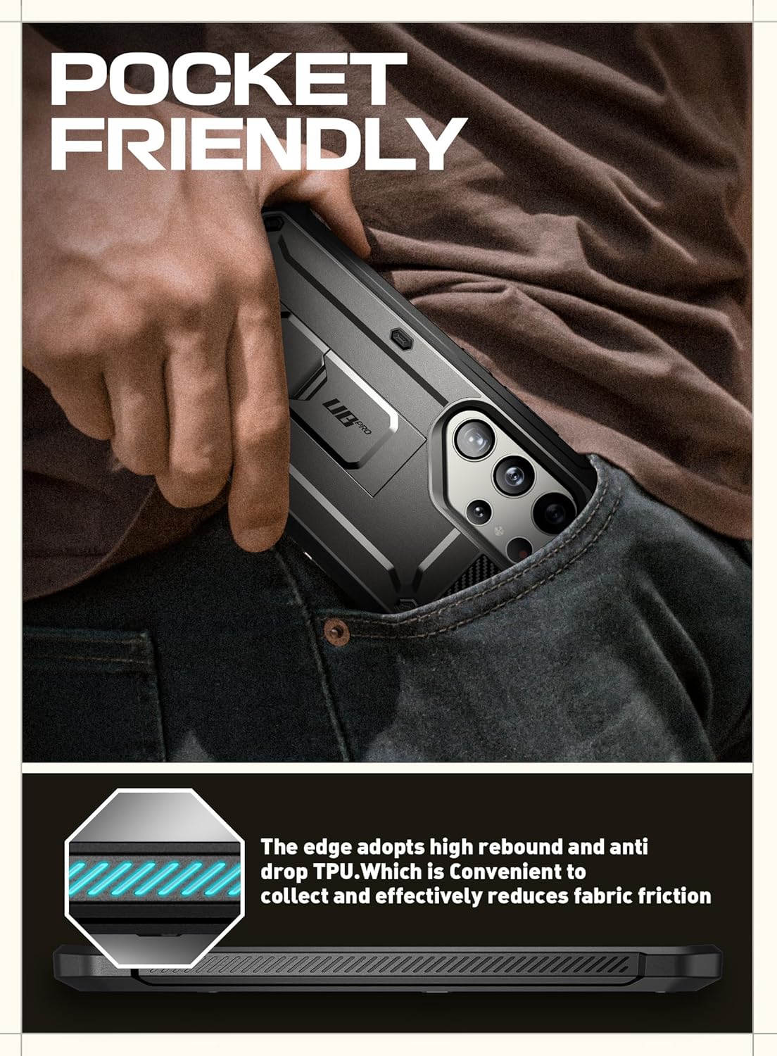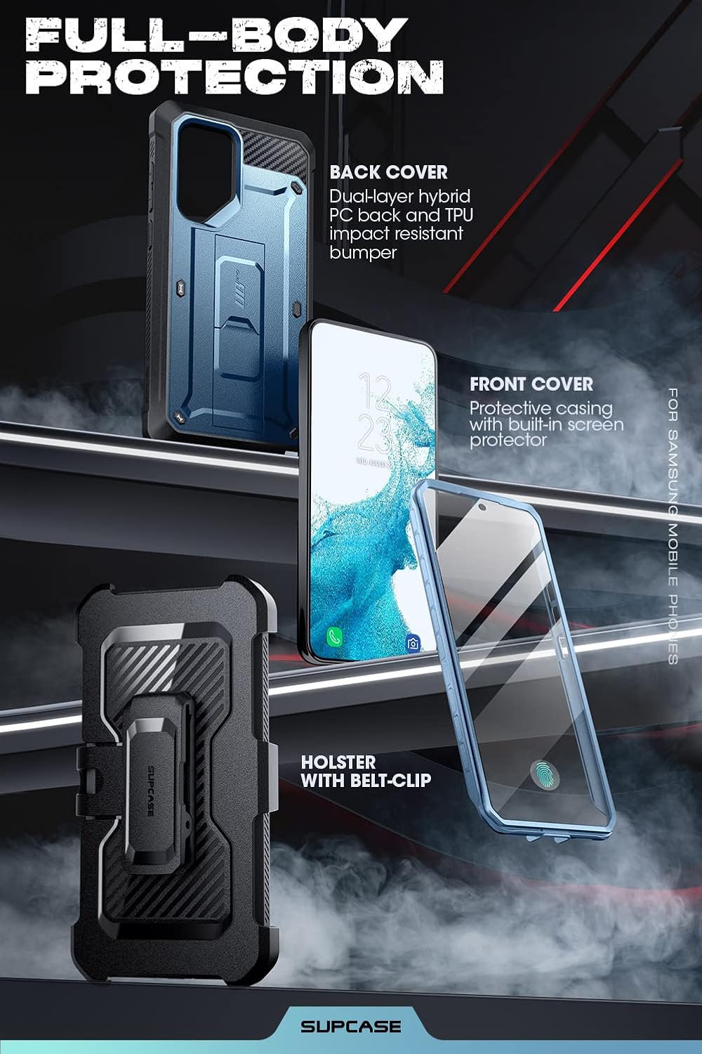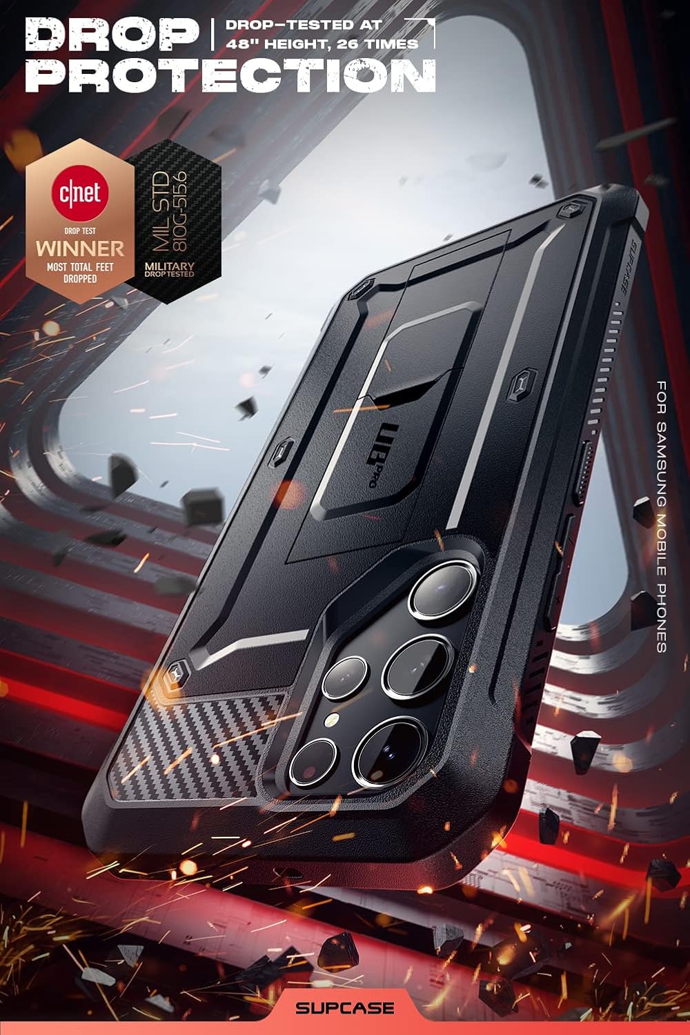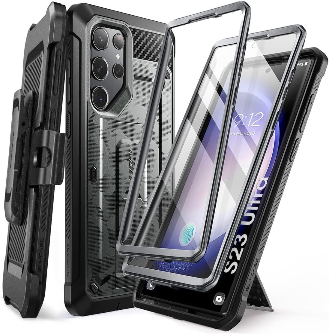 SUPCASE Unicorn Beetle Pro Case for Samsung Galaxy S23 Ultra 5G (2023), [Extra Front Frame] Full-Body Dual Layer Rugged Belt-Clip & Kickstand Case with Built-in Screen Protector (Black)