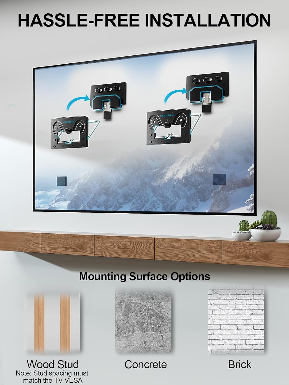 • Supcline Ultra Slim TV Wall Mount Compatible with 14"- 80" Flat & Frame TVs, 0.3" Micro-Gap Low Profile TV Mount, Minimalist Look, Blends Any Interior, Hold up to 100Lbs, Not for 100x100 Vesa
