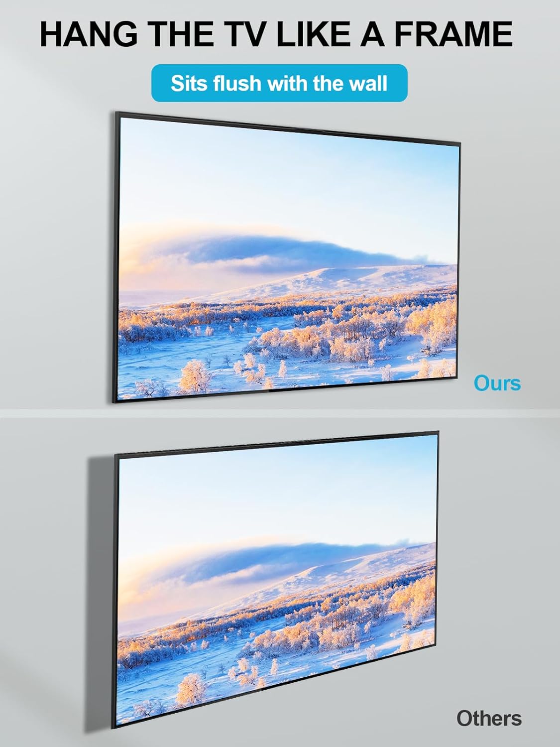 •  Simplicity Meets the Slimmest Design: The slimmest low profile TV wall mount (0.3")—70% thinner than standard mounts (1"). Your TV sits almost flush, creating a picture-like display that blends into your space. No gaps, just minimalist elegance.(Only for TV with flat back, not for TV with uneven back or no holes).