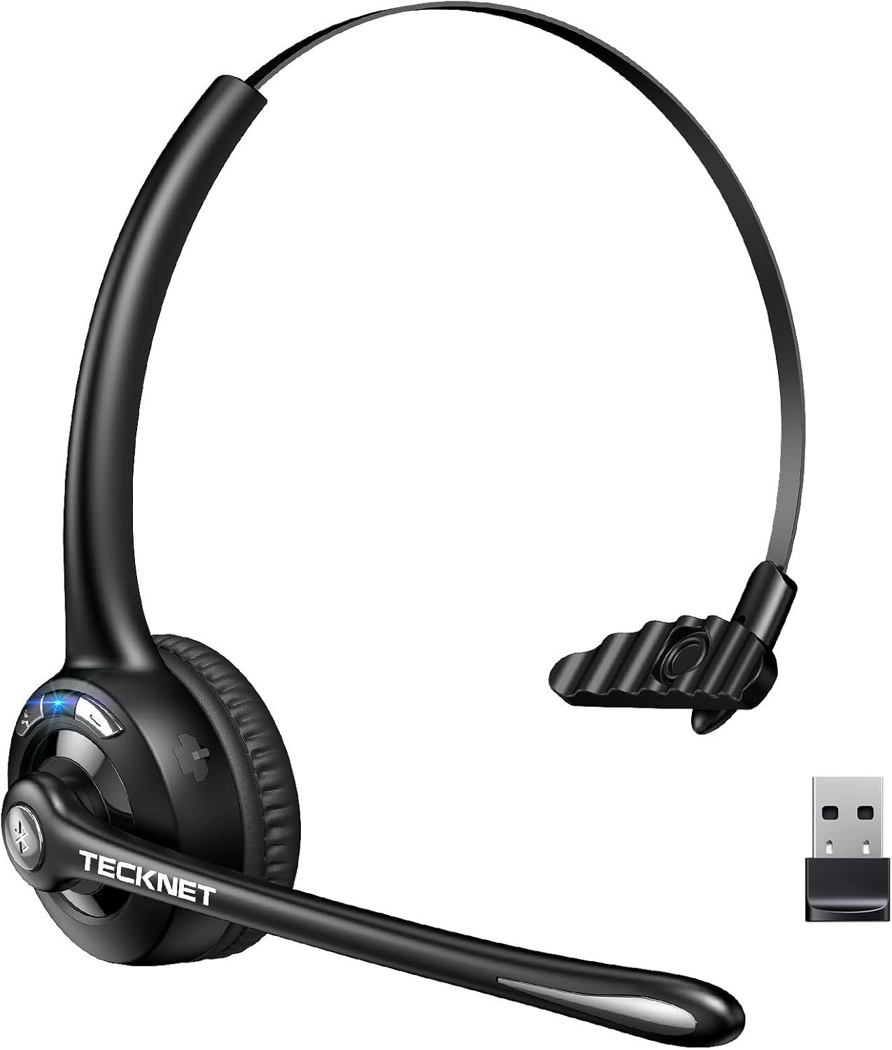 Bluetooth & USB Dongle: TECKNET Bluetooth headset adopts 5.2 Bluetooth technology to ensure stable and fast connection. Even for devices that lack built-in Bluetooth functionality, such as desktop computers, you can use a USB adapter to connect.