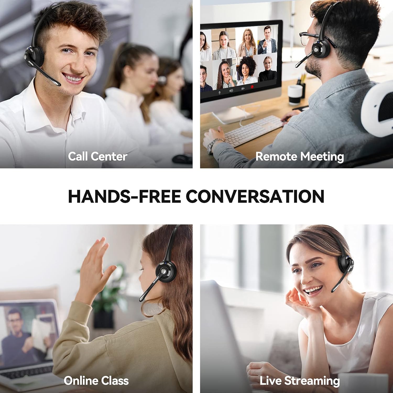 Premium Comfort: Ultra-light wireless PC headset with super soft protein leather ear cups and the adjustable headband contribute Rigorously tested for stability and comfort on a wide range of ear shapes. Skin-friendly ear pads and super lightweight design ensure you focus on your talk with lasting wearing comfort, a perfect choice for truckers, travel, video conferencing, e-learning, live streaming, video streaming, and more.