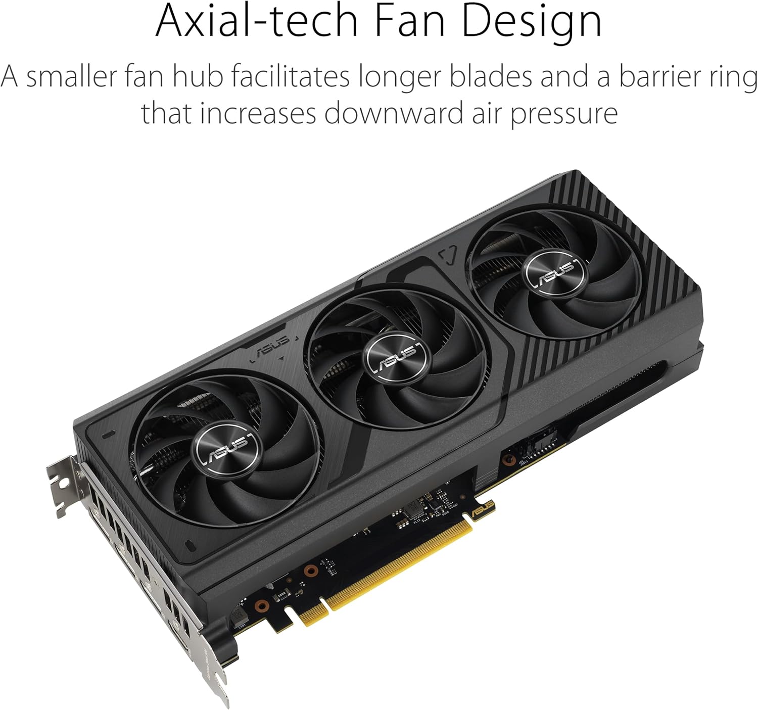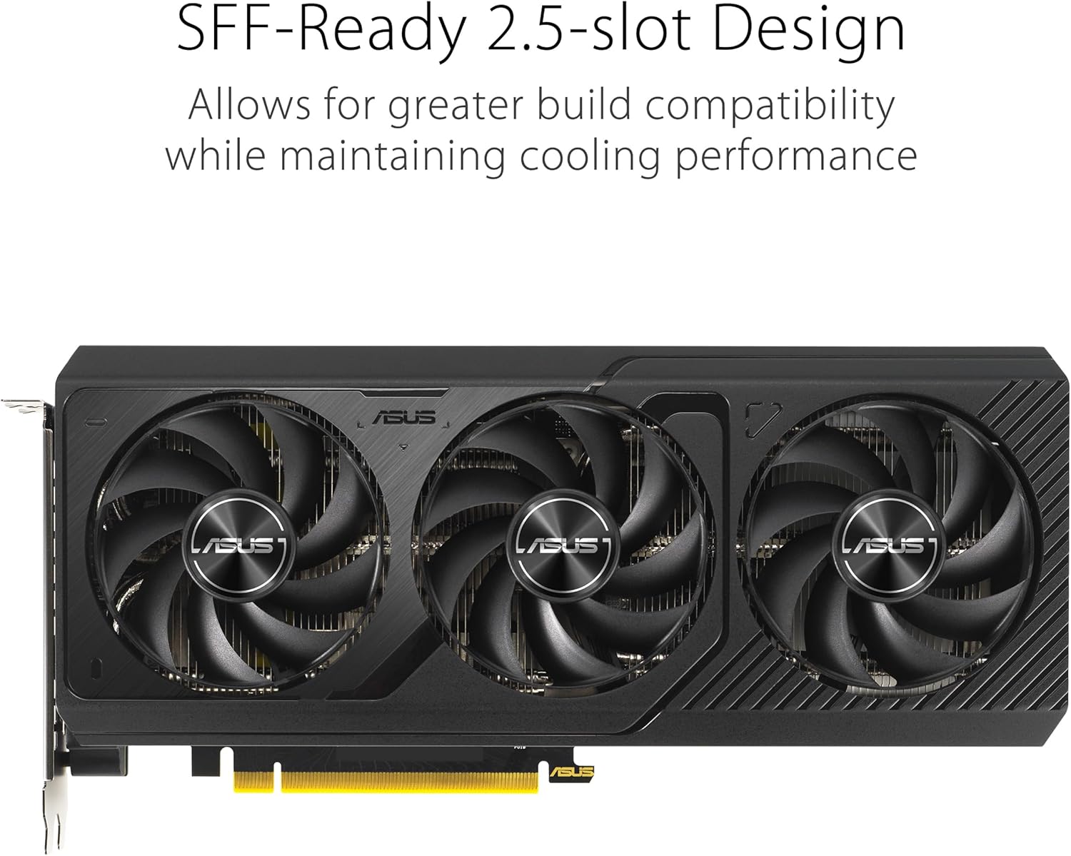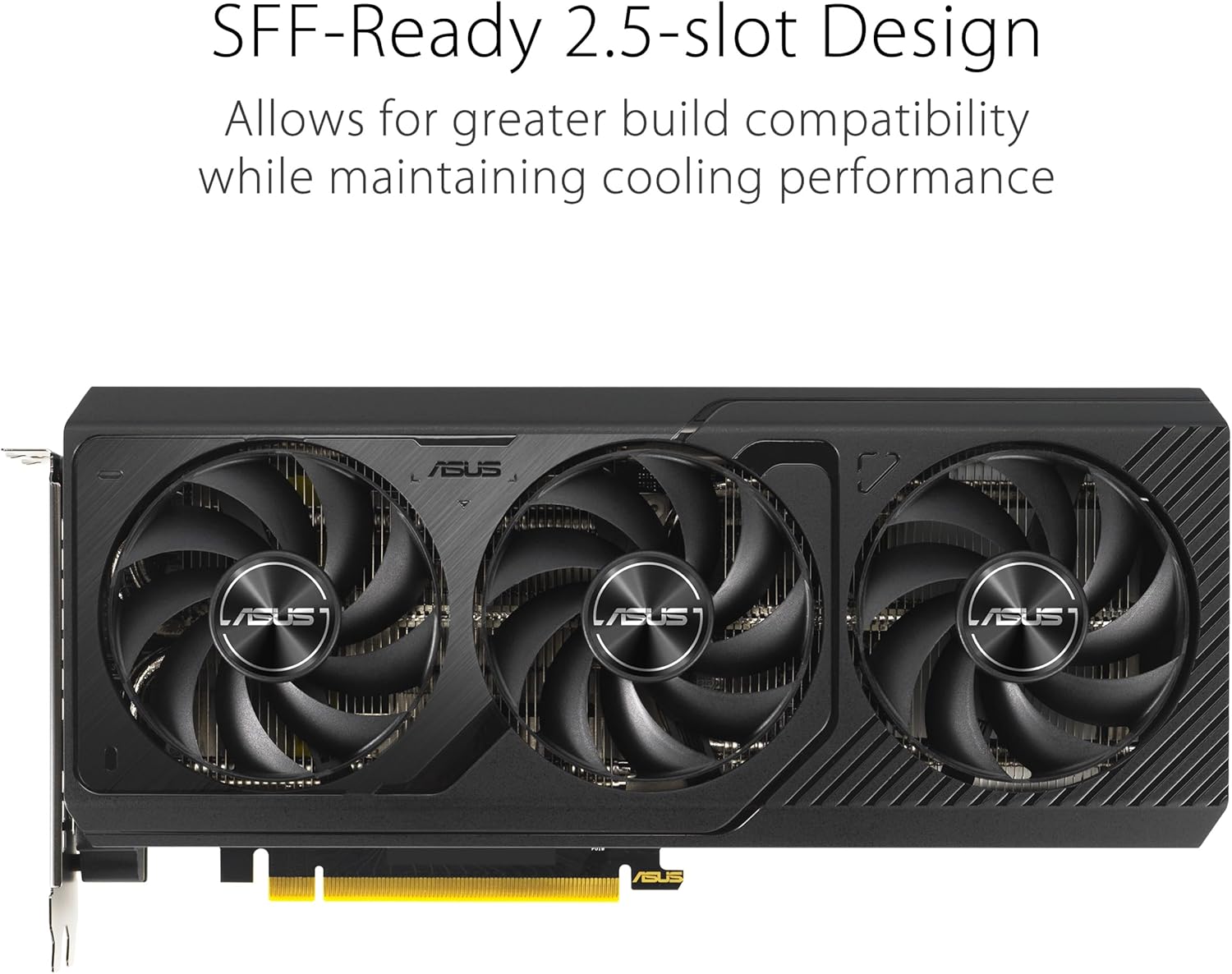 The ASUS Prime RTX 5070 features a 2.5 slot design with a carefully arranged layout for the shroud, heatsink and heat pipes to let the three Axial-tech fans leverage chassis side-panel ventilation and deliver optimal thermal performance. A premium phase-change GPU thermal pad provides superior thermal conductivity and enhanced heat dissipation, ensuring optimal performance and longevity for graphics cards under heavy loads.