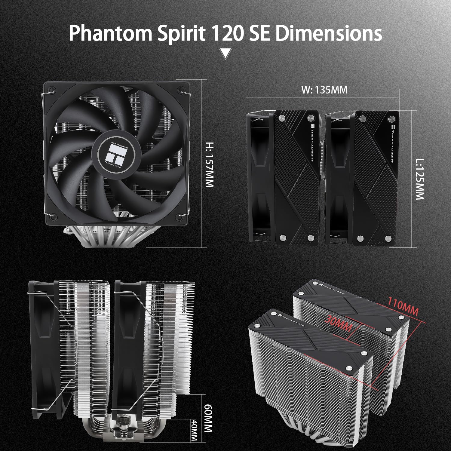 Thermalright Phantom Spirit 120 CPU Cooler,7×6mm Heat Pipes CPU Air Cooler,Dual PWM Fan Computer Cooling,1500RPM Speed,for AMD AM4 AM5/Intel 1700/1851/1150/1151/1200/17XX/2011
