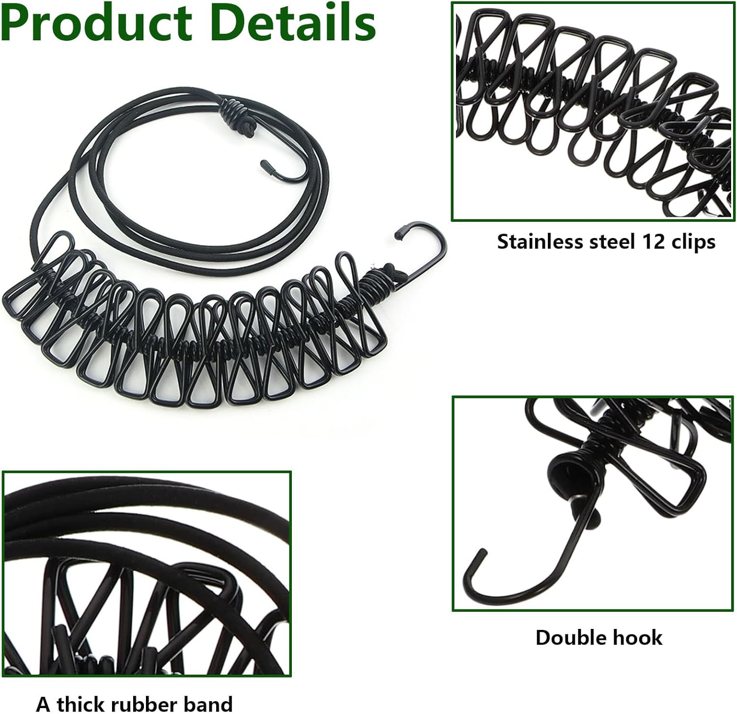 | Material Type | Elastic Rope + Metal Hooks + Plastic Clips |