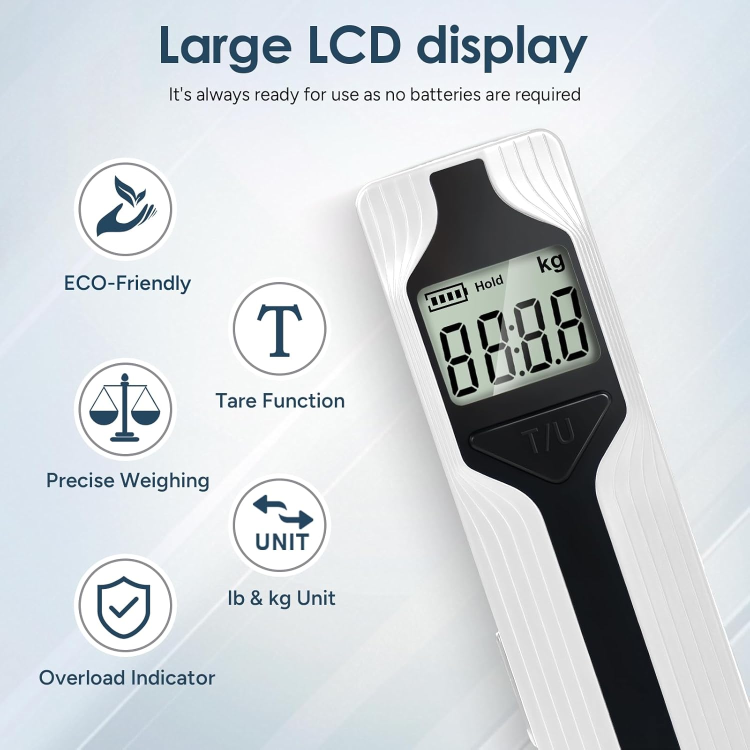- TRAVEL WITHOUT STRESS: Batteries died when it needed? Paying excess fees for overweight? Get rid of these concerns with this battery-free luggage scale. You are free to weigh with us anywhere anytime without concern
