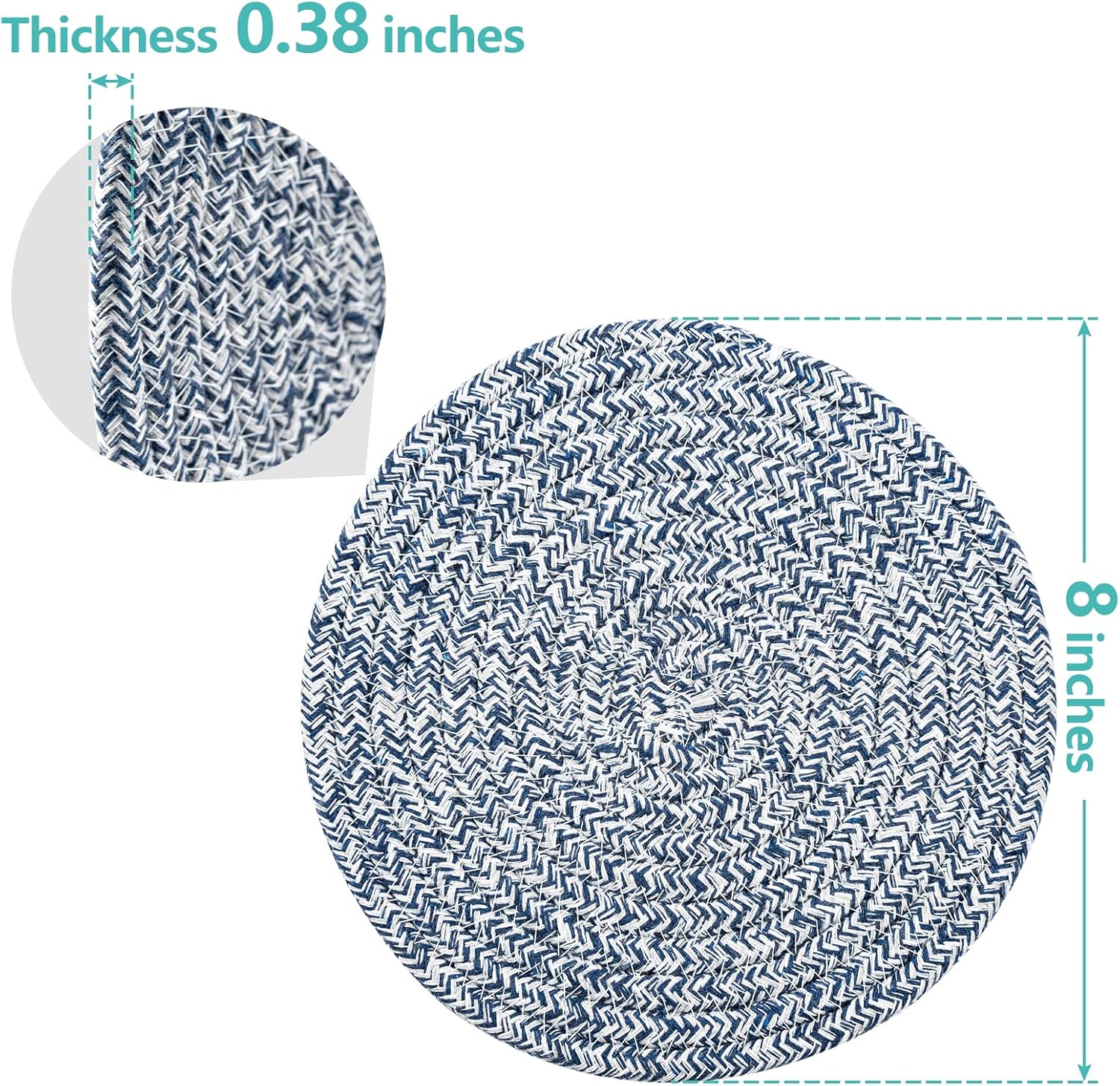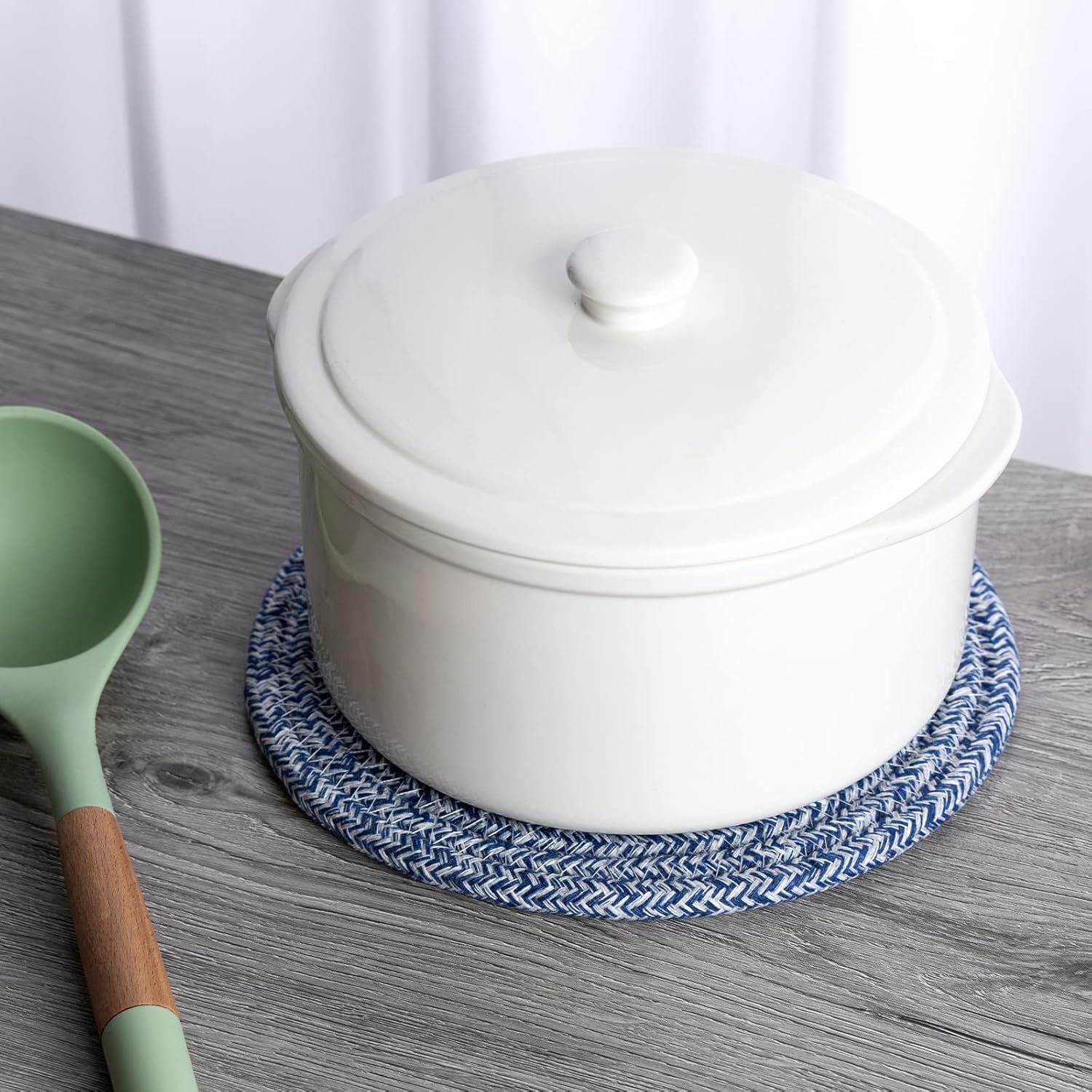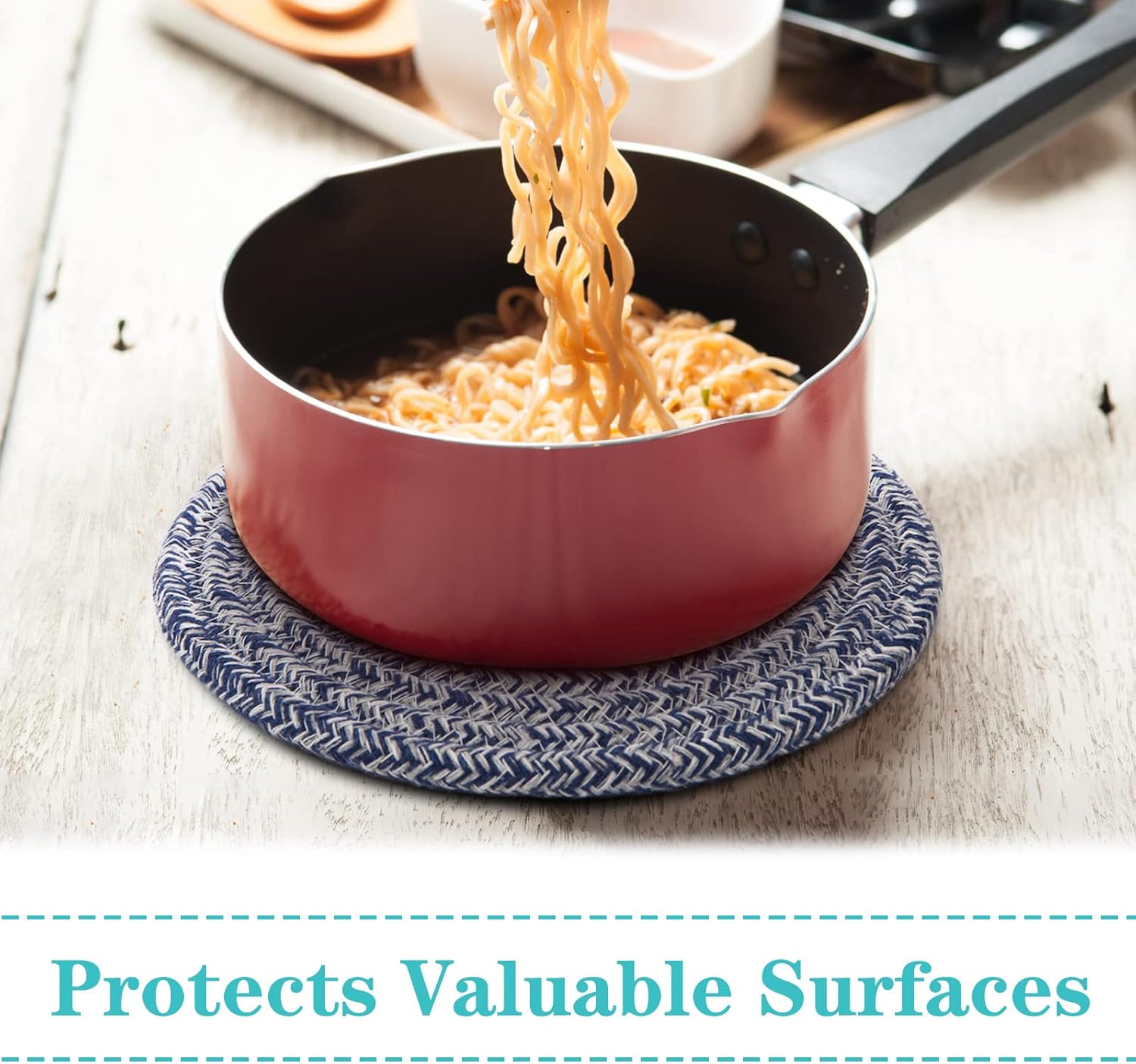 - Trivets for Hot Dishes, Pots and Pans, 8 Inches Hot Pads 5 Pcs, Pot Holders for Kitchen, Heat Resistant Mat Protect Counter, Coasters Set Home Essentials Farmhouse Decor (Blue)