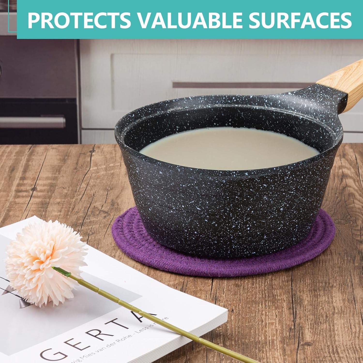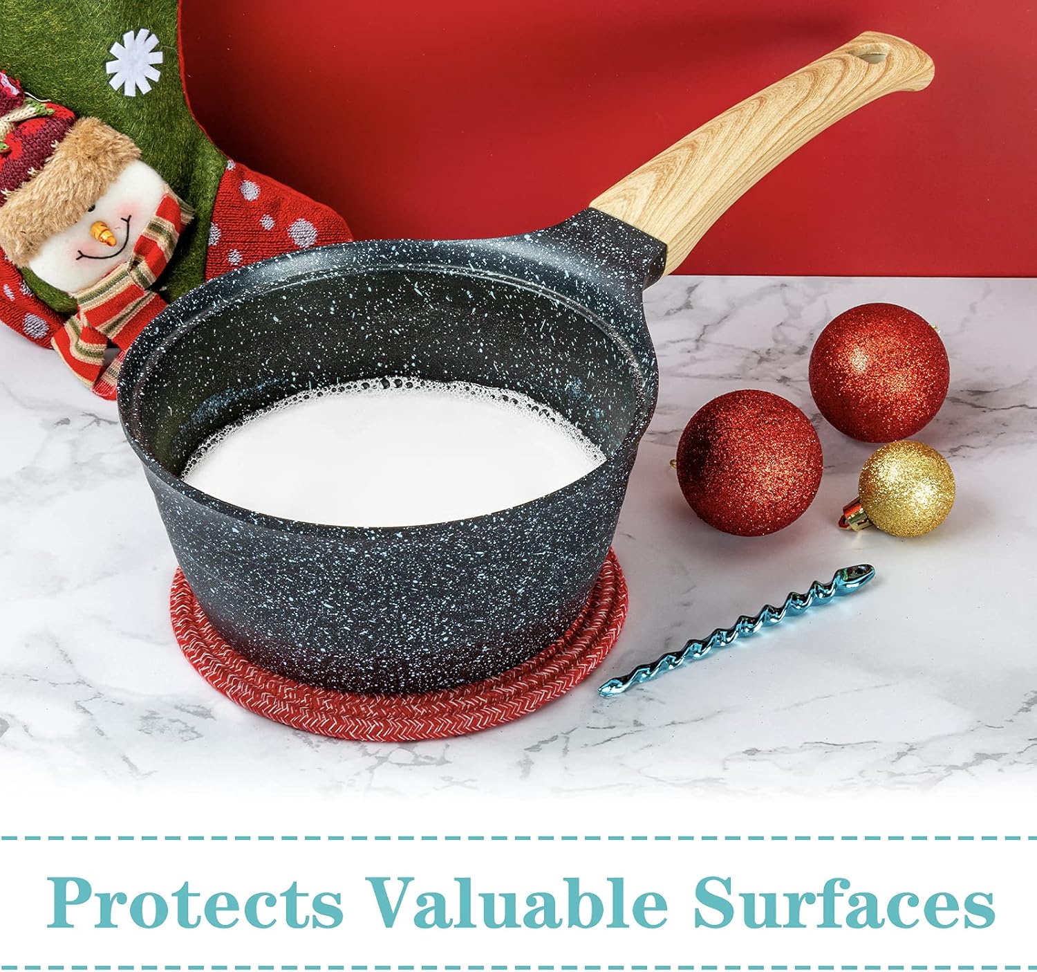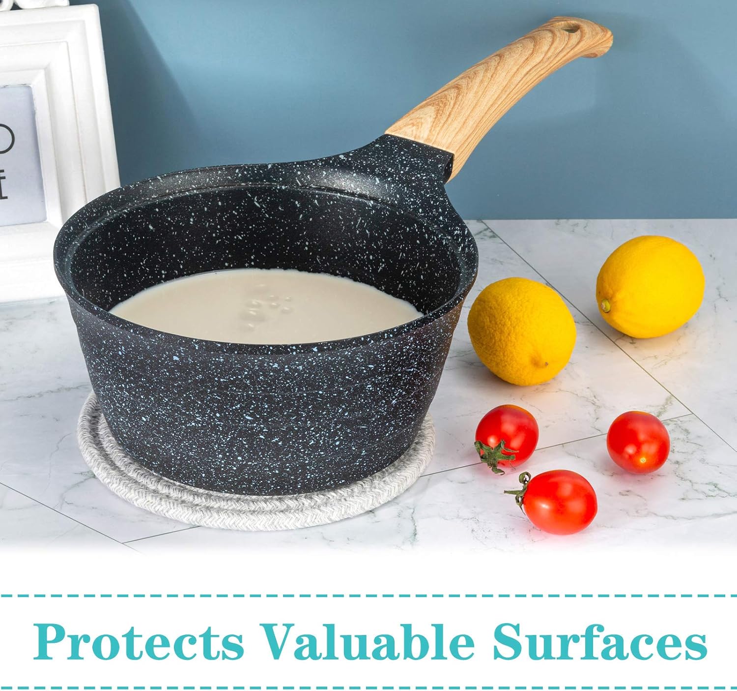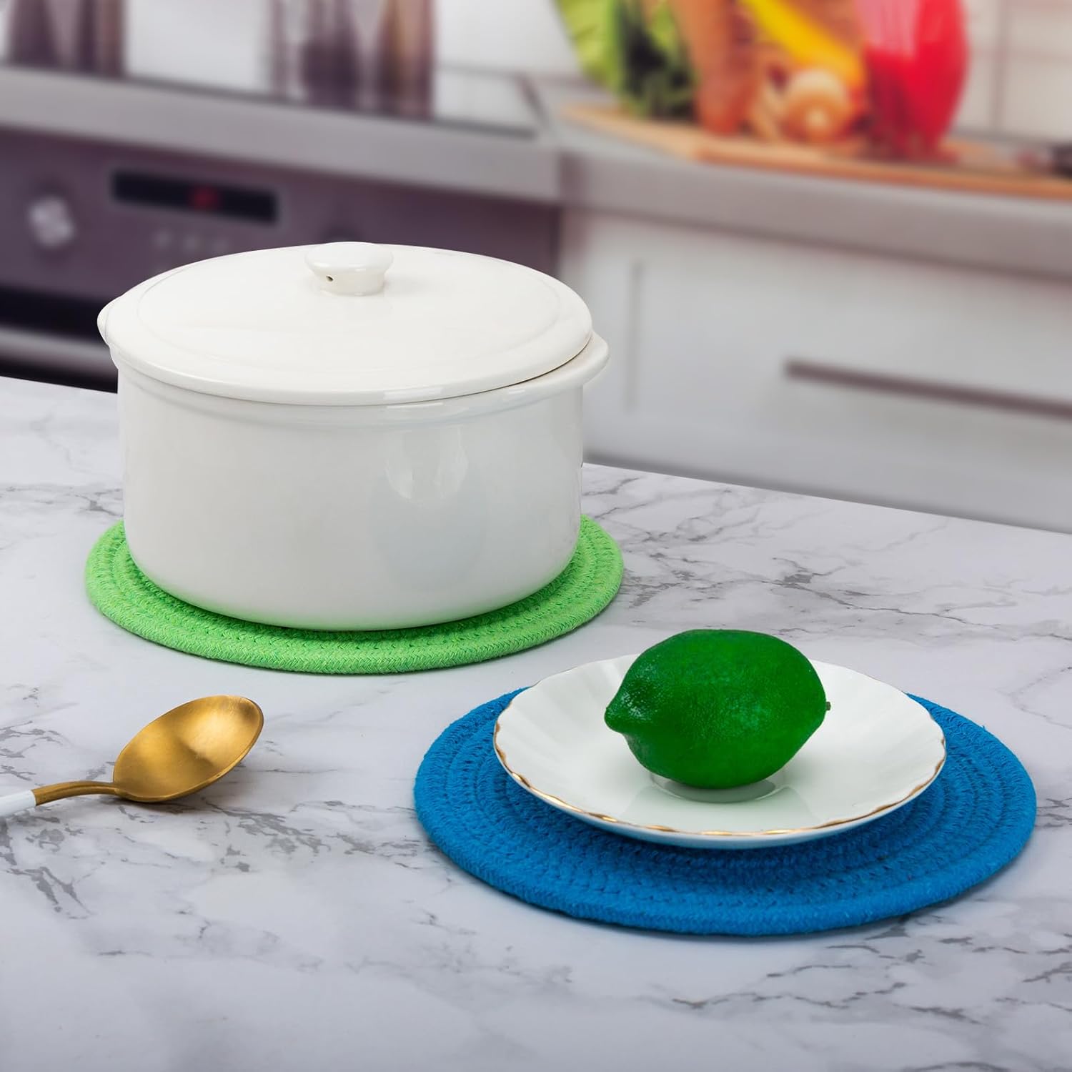 - Trivets for Hot Dishes, Pots and Pans, 8 Inches Hot Pads 5 Pcs, Pot Holders for Kitchen, Heat Resistant Mat Protect Counter, Coasters Set Home Essentials Farmhouse Decor (Blue)