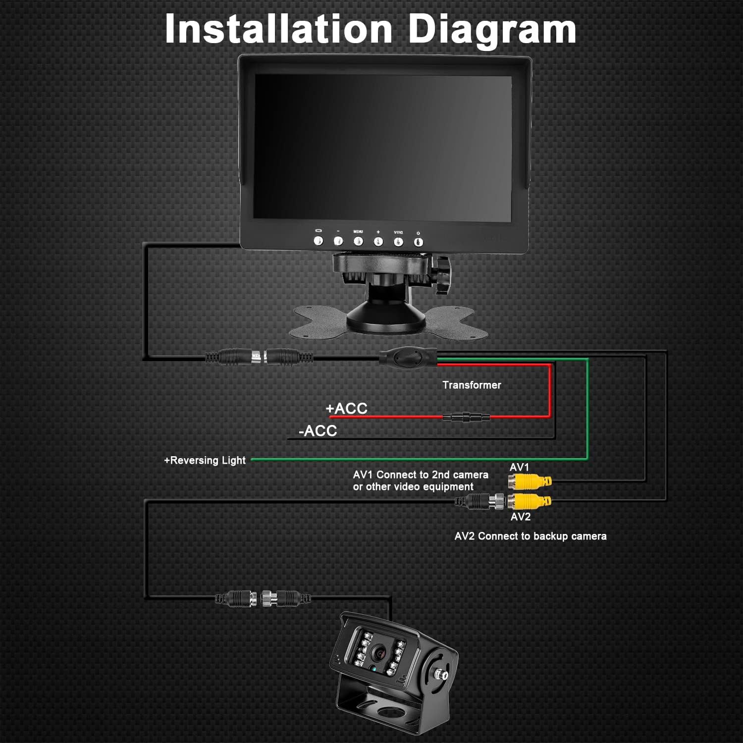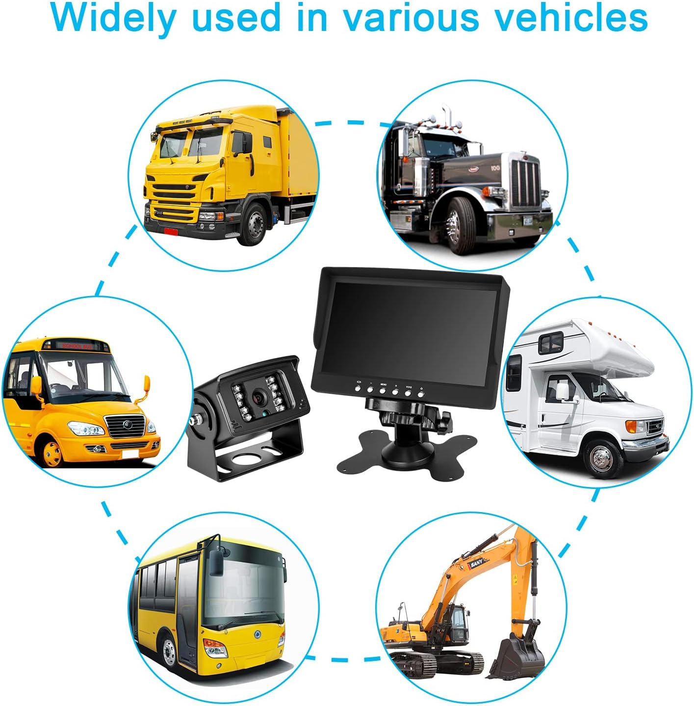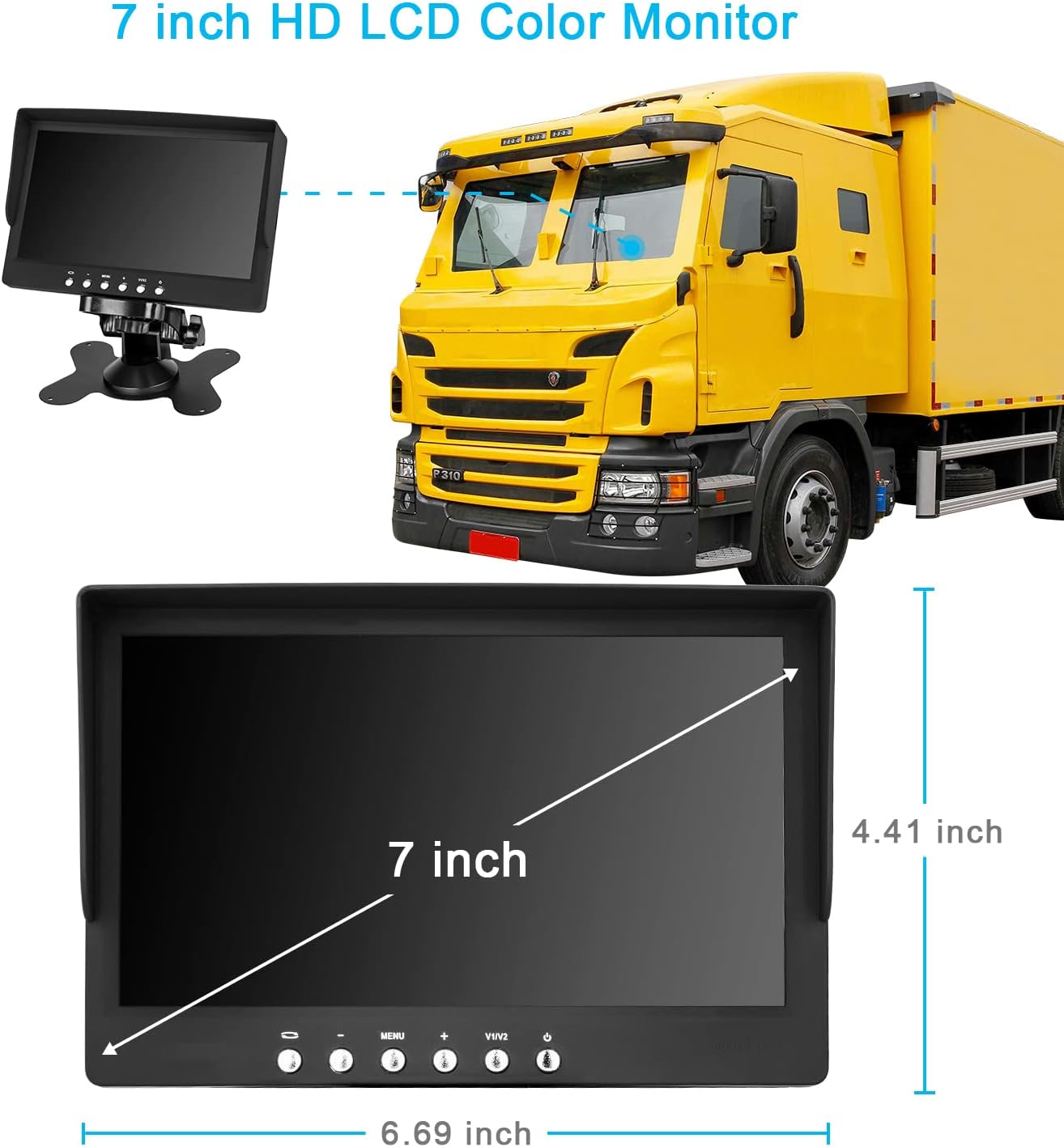 Truck Backup Camera kit,Waterproof Night Vision Rearview Camera cab cam with 7 inch Monitor+ 4 PIN Camera Cable for Bus/Van/Trailer/RV/Camper/Motor Home/Pickup/Harvester/5th Wheel Vehicles(12-24V)