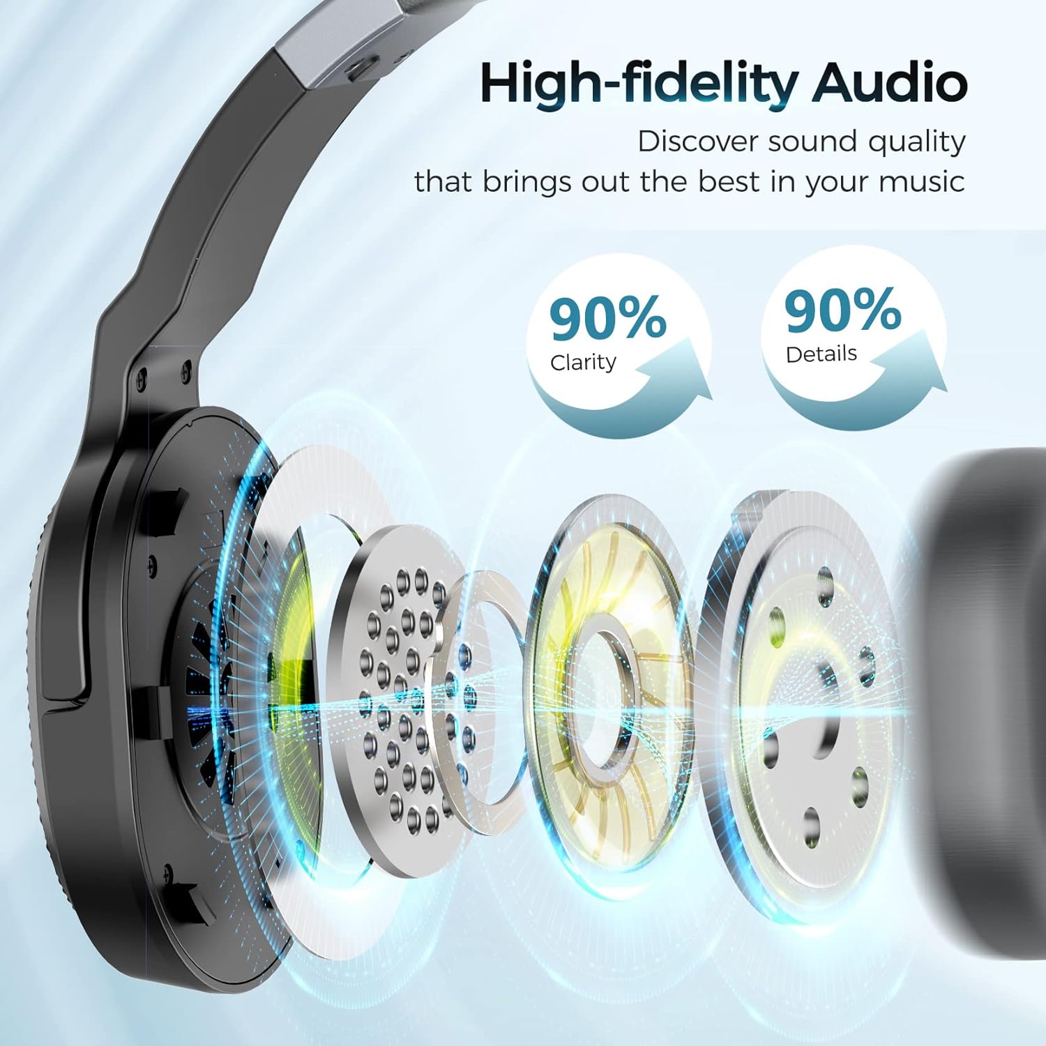 Rich Sound with Every Details: These wonderful Bluetooth headsets produce sound with ultra-low distortion across the audible range. You'll hear every note with a new sense of clarity. The ear cushions also gently create an immersive seal that is the foundation of incredible sound
