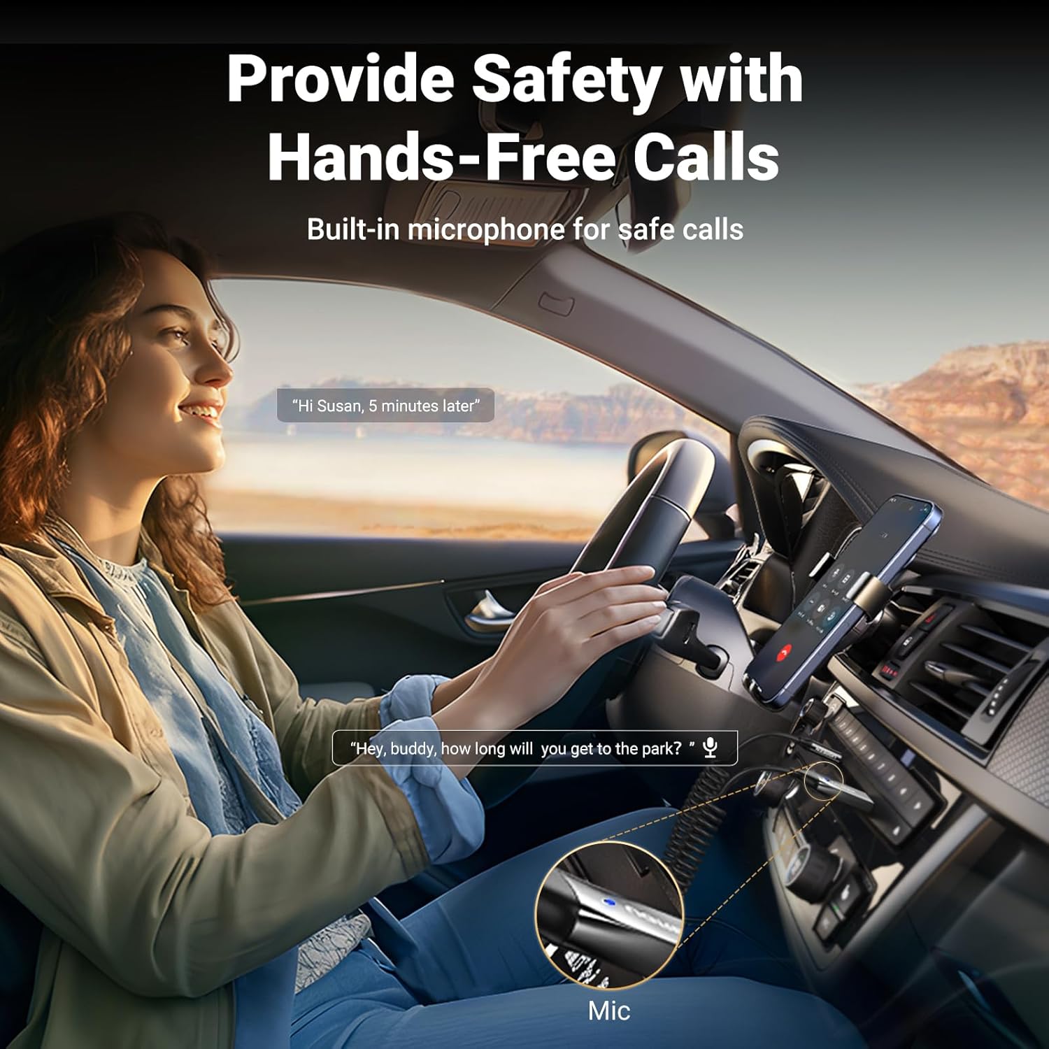 - Built-in Microphone for Safe Driving: UGREEN wireless Bluetooth 5.3 receiver audio adapter built-in microphone, you can hand-free calling or voice-navigation just pressing a button on the phone and keep a safe driving trip
