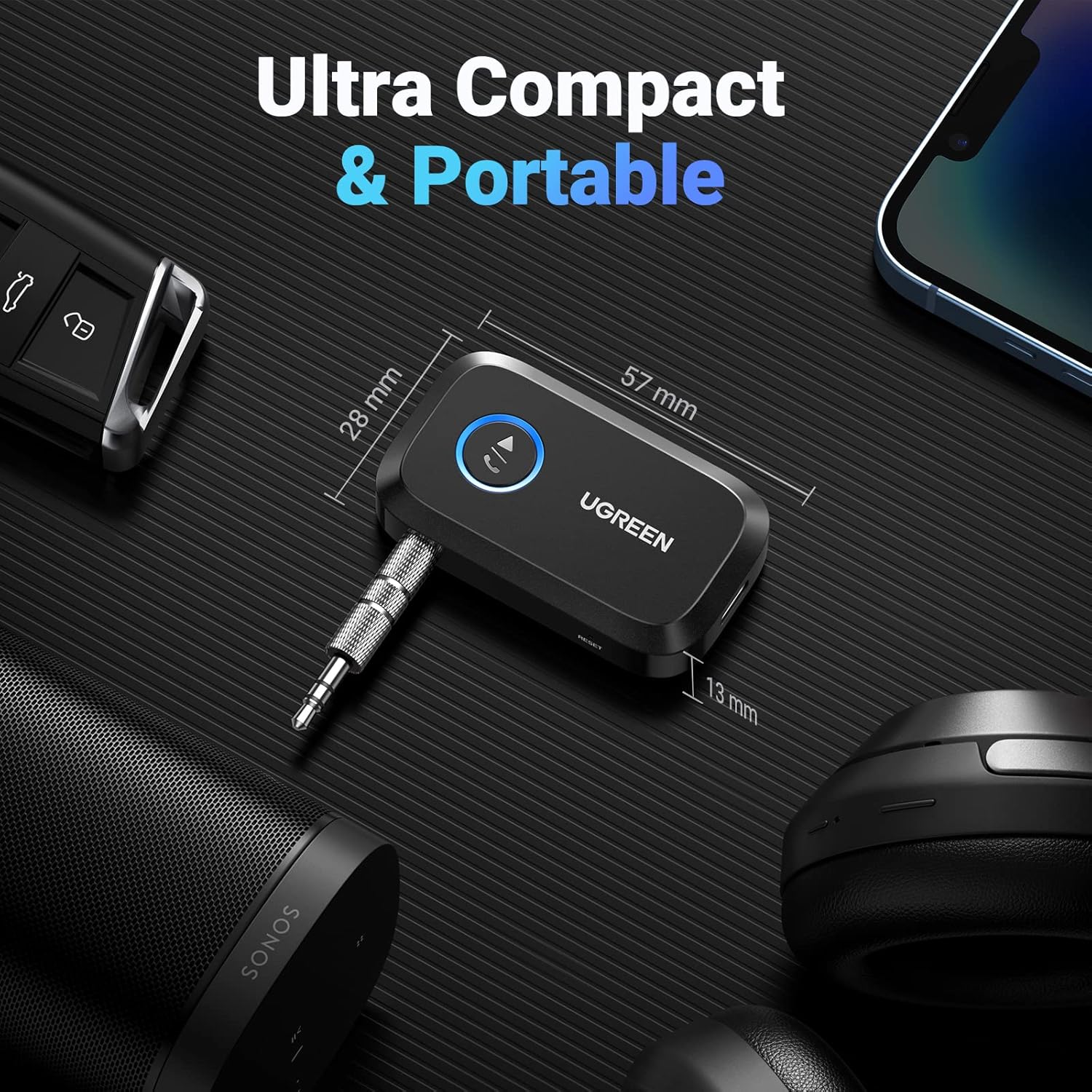 UGREEN Bluetooth 5.3 Receiver for Car, Aux to Bluetooth Adapter 3.5mm Jack, Crystal Clear Sound, Built-in Mic for Hands-Free Calls, 15H Battery Life, Compatible with Car Speaker Home Stereo Amplifier