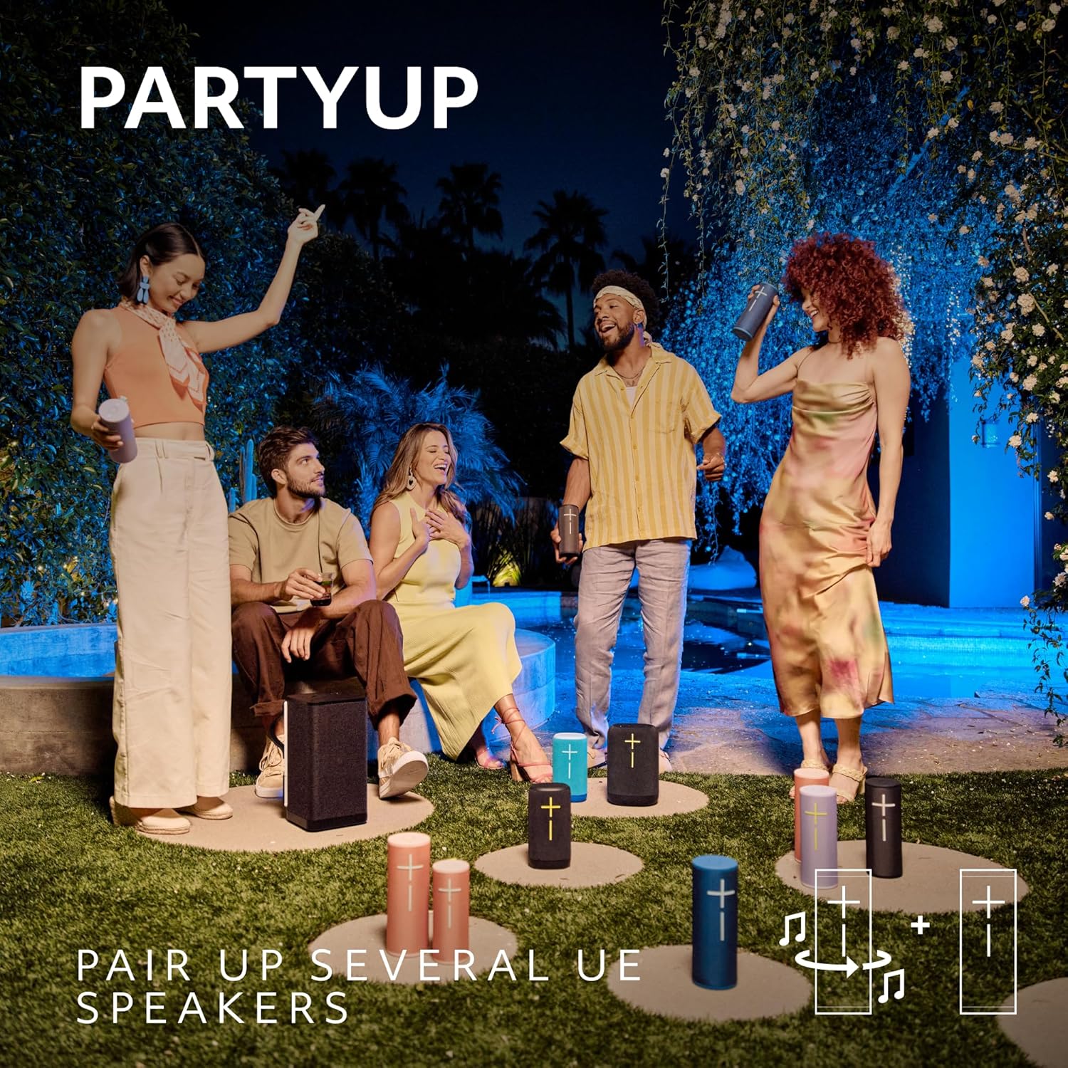 The Ultimate Ears MEGABOOM 4 Portable Waterproof Bluetooth Speaker is the ultimate Bluetooth party speaker, delivering powerful 360-degree sound and thundering bass without sacrificing balance and clarity. With a massive 20 hours of sound on a single charge, you can boom all day long. With a wireless range of 147 feet (45 meters) and drop protection of up to 3.28 feet (1 meter), it’s safe to say the MEGABOOM 4 wireless speaker is made to move. This portable speaker is drop-proof, waterproof, floatable, and virtually indestructible. Use the Magic Button to play, pause, skip, and control your music directly from your favorite streaming service. Set up one-touch playlists on your favorite platforms like Spotify, Amazon Music on Android, and Apple Music on iOS.