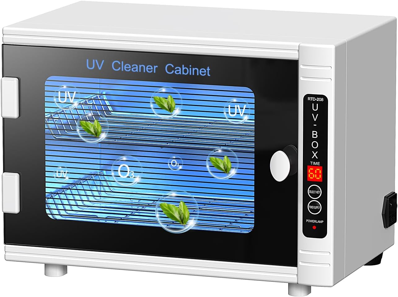 【𝐒𝐚𝐟𝐞𝐭𝐲 𝐚𝐧𝐝 𝐈𝐧𝐭𝐞𝐥𝐥𝐢𝐠𝐞𝐧𝐭】The cleaner cabient uses ultraviolet light, not generate heat. Coated glass door blocks most of the uv light, avoiding direct exposure to your eyes. Smart security switch sensing, the UV light will auto-off when the door open.This will protect you from UV damage
