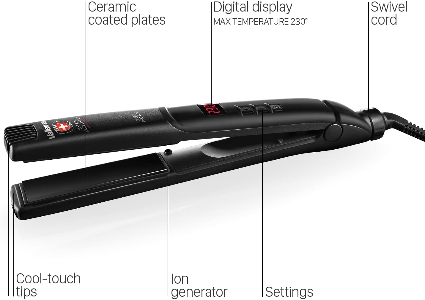 Valera Professional Hair Straightener, with ion Generator and Digital Display, max. Temperature 450°F